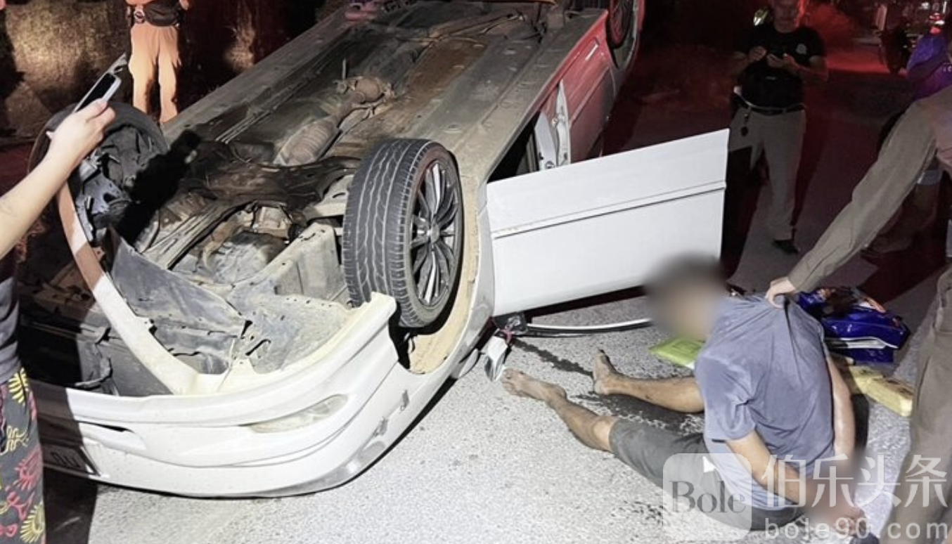 接获通报后,邻近的敦都县警署迅速配合设卡拦截。嫌疑车辆多次绕行、逆向与闯红灯试图甩脱追捕,警方全程保持无线电联动,实施分段围堵。直至车辆驶入敦都县通往达功地区的公共道路时,因高速行驶失控,与其他车辆发生碰撞,最终侧翻在路旁,四轮朝天。