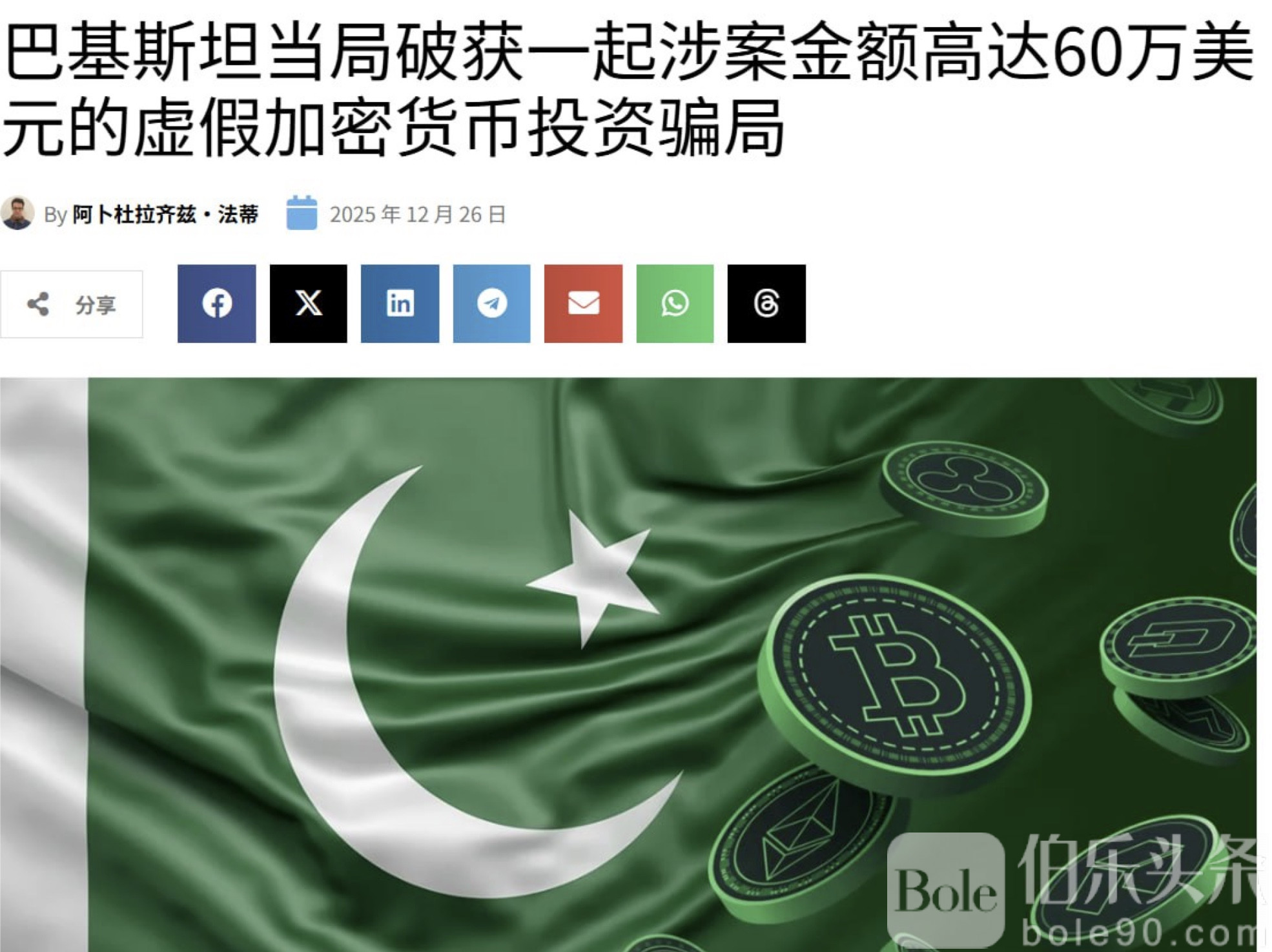 巴基斯坦捣毁跨国加密投资诈骗集团,涉案高达6000万美元