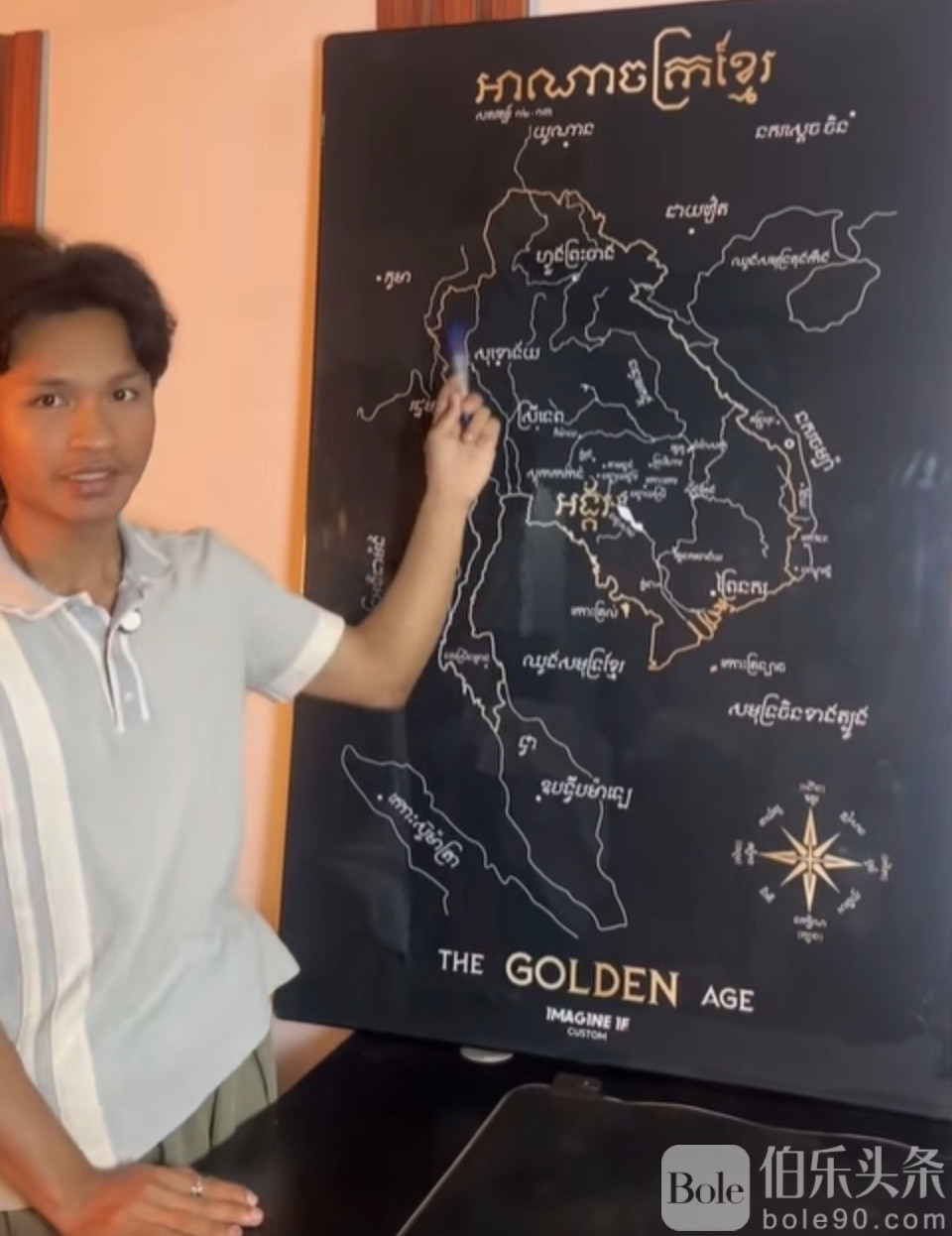 伯乐头条专讯:近日,一名柬埔寨网红在网络上开设在线课程,向年轻一代传授所谓“历史地图”,引发邻国舆论关注。这位网红在课程中声称,泰国、老挝、中国、马来西亚以及越南部分地区,自古以来曾是柬埔寨的领土,涉及从素可泰、斯里泰普、琅勃拉邦、十二盘那,到马来半岛的宋卡、朗加苏卡等地。同时,他甚至将“泰国湾”改称为“柬埔寨湾”,并制作相关地图贩售。