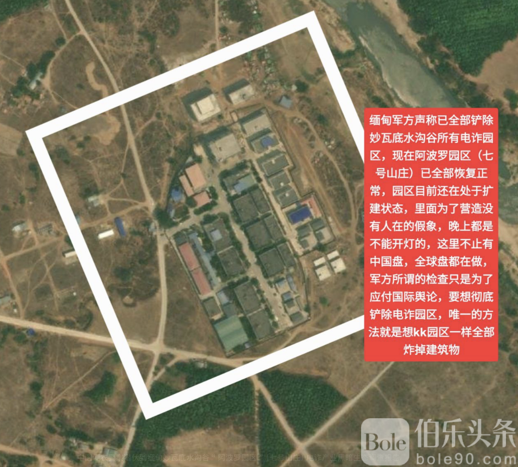 伯乐头条专讯:近日,中国便衣警察深入缅甸妙瓦底水沟谷地区,对“阿波罗园区”(现称“七号山庄”,又名“小KK园区”)进行实地调查,揭露出园区背后的跨国电诈犯罪生态。该园区长期通过“阳光集团”“鑫力集团”“远大集团”等空壳公司实施电信诈骗,同时存在非法拘禁、暴力虐待、人口贩卖甚至器官交易等犯罪行为,并与当地军方形成利益保护网,使执法检查难以奏效。