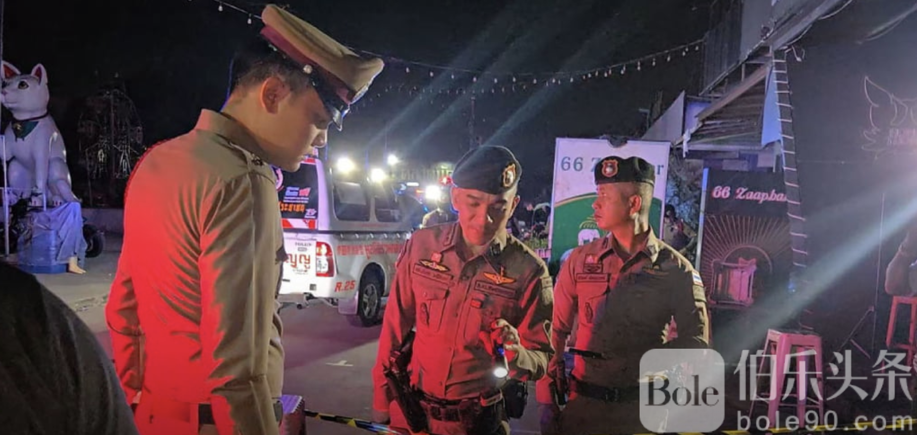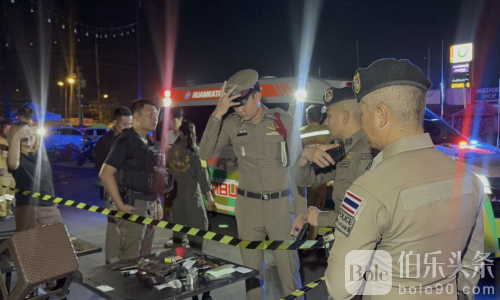 伯乐头条专讯:泰国沙没浦里府邦普利区一酒吧凌晨发生致命械斗事件,一名男子因争执被刺身亡,一名女子被刺重伤。警方接报后迅速到场,并对现场进行勘查及证据收集。