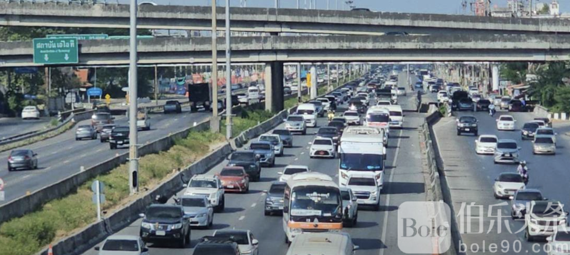 伯乐头条专讯:新年长假结束,民众纷纷返回曼谷,导致曼谷通往市区的主干道——巴吞旺路(Phaholyothin Road)车流大幅增加。记者4日下午3时实地探访发现,从大城府交界至通往多能通行高架路(Don Mueang Tollway)前的铸币厂段,主路与部分辅路车辆已几乎占满,车流呈间歇性缓行状态,高架路入口更因车辆汇入而出现明显减速。