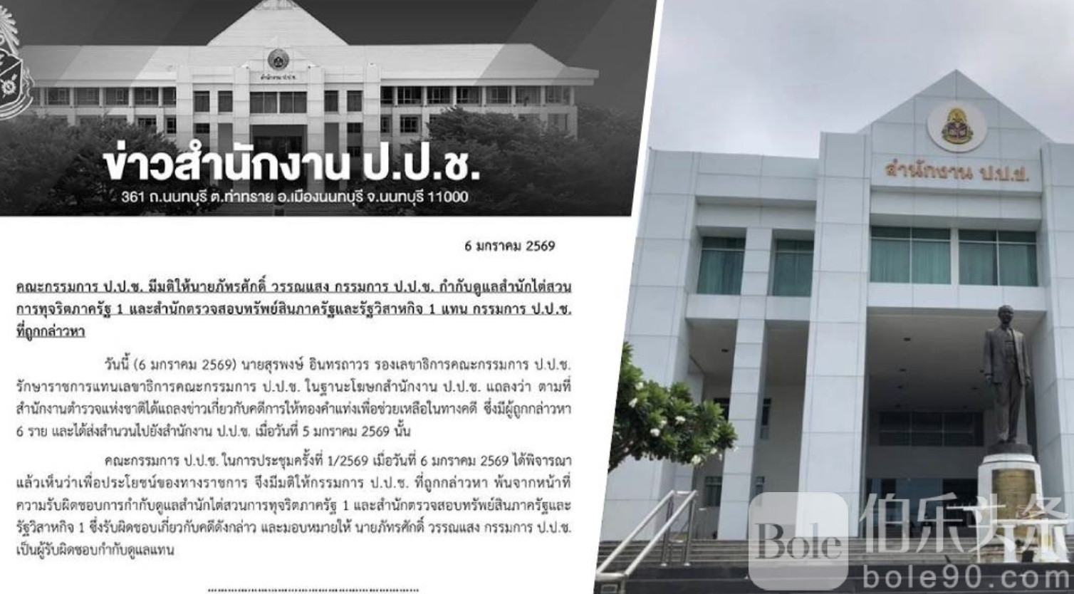 伯乐头条专讯:泰国国家反腐败委员会(NACC,简称“反贪委”)内部再起波澜。6日,反贪委正式作出决定,一名因涉嫌收受金条、介入案件“打点操作”的委员被即时解除相关职务,原本由其负责监管的关键调查与资产审查部门,也随之完成临时换将。