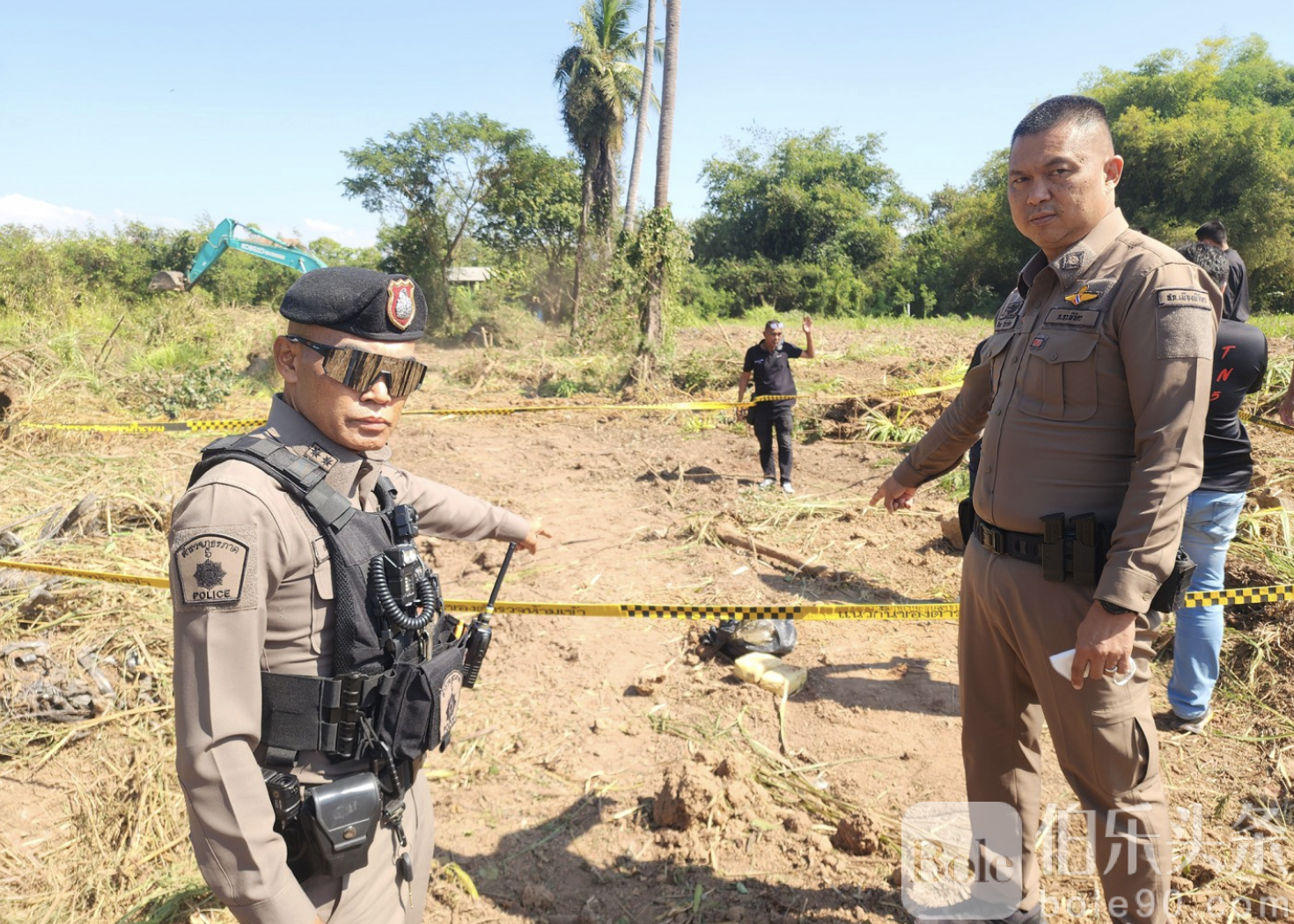 伯乐头条专讯:1月6日,泰国碧差汶府(Phichit)发生一起颇具戏剧性的毒品发现事件。当地一台背挖机在清理杂草时,意外挖出两大包黑色塑料袋,里面装有疑似冰毒约20,000颗。