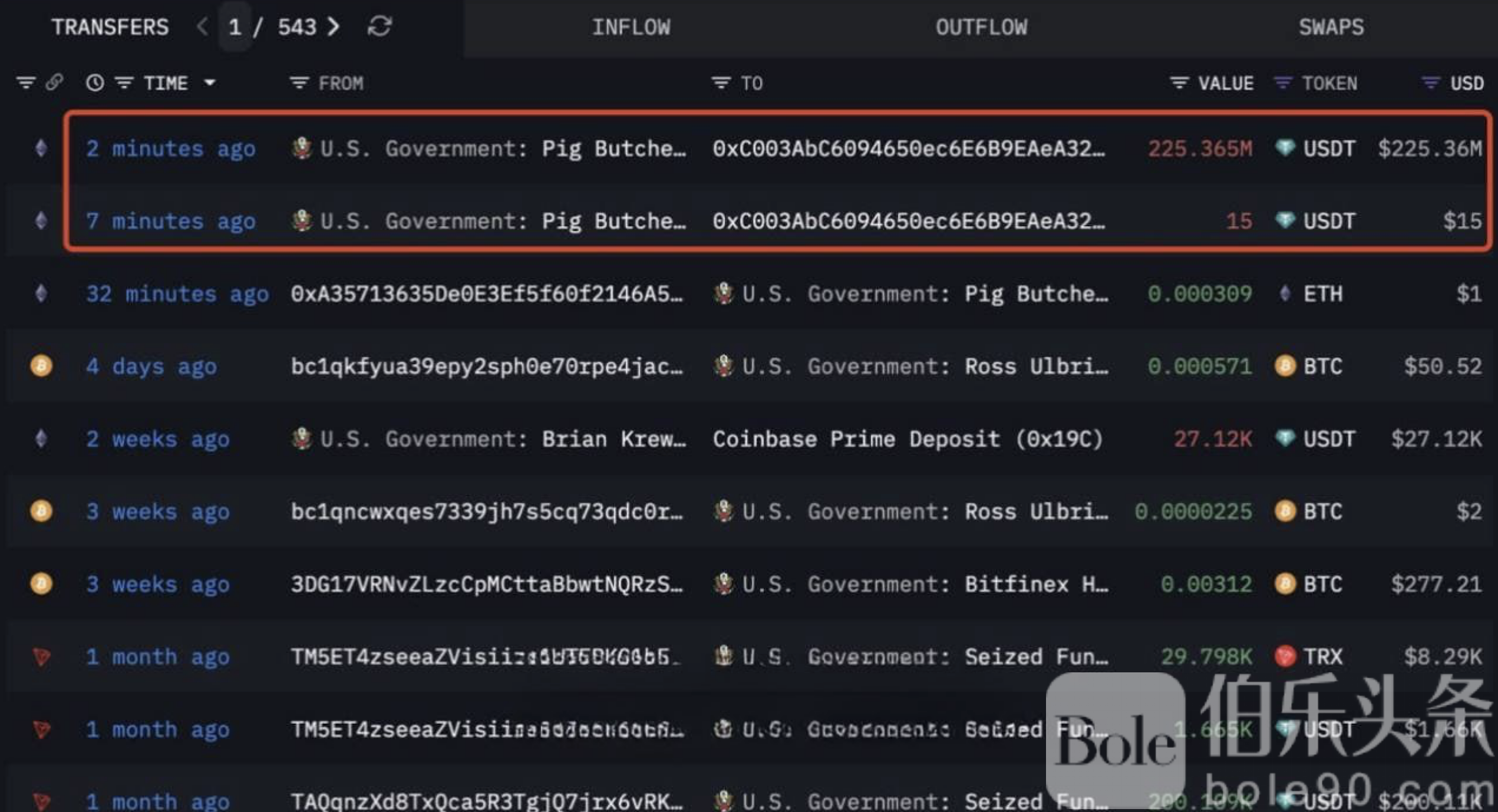 美国政府转移超2.25亿USDT 涉“杀猪盘”诈骗资金!