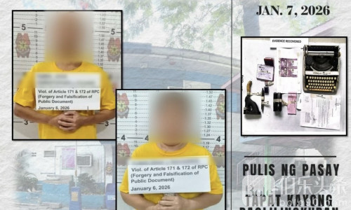 据帕赛市警察局局长德塞斯托(Joselito De Sesto)上校介绍,1月6日,市警情报组在巴朗盖70区帕萨迪纳街实施执法行动,抓获41岁的“JC”(化名,男,文员)和60岁的“Ina”(化名,女,秘书)。两人均来自奎松市,被指长期在帕赛市政厅附近“接单”,从事非法公证业务。