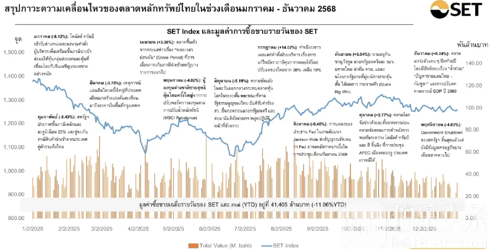 伯乐头条专讯:泰国股市经历了充满波动的2025年,SET指数全年收盘下跌10%,外资净卖出超过1000亿泰铢,引发市场关注。