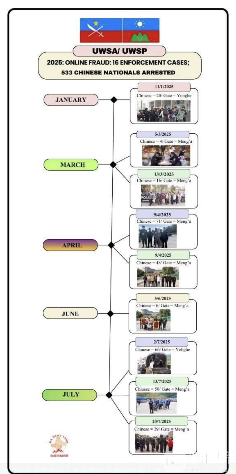 伯乐头条专讯:据佤邦青年之声整理的数据显示,2025年,佤邦联合军控制区向中国方面移交了16批网络诈骗及其他涉案人员。其中包括533名中国公民及近9万名无合法证件的中国公民。