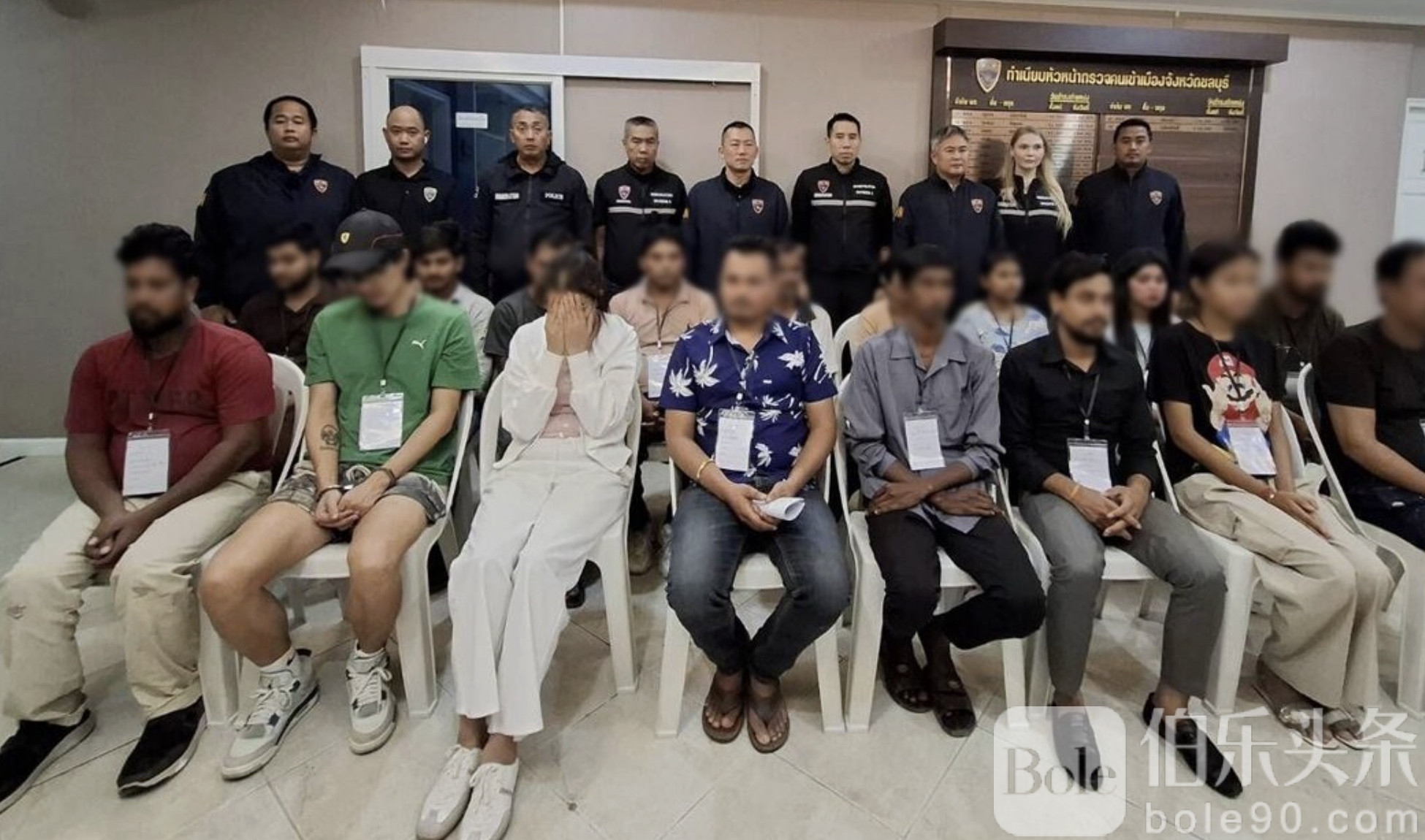 伯乐头条专讯:泰国春武里府警方近日在芭提雅展开突击行动,一处看似普通的公寓,背后却暗流涌动。警方联手多部门深夜查房,一举控制37名外籍人员,涉及非法入境、逾期滞留、非法务工,甚至疑似吸毒等多项违法行为。