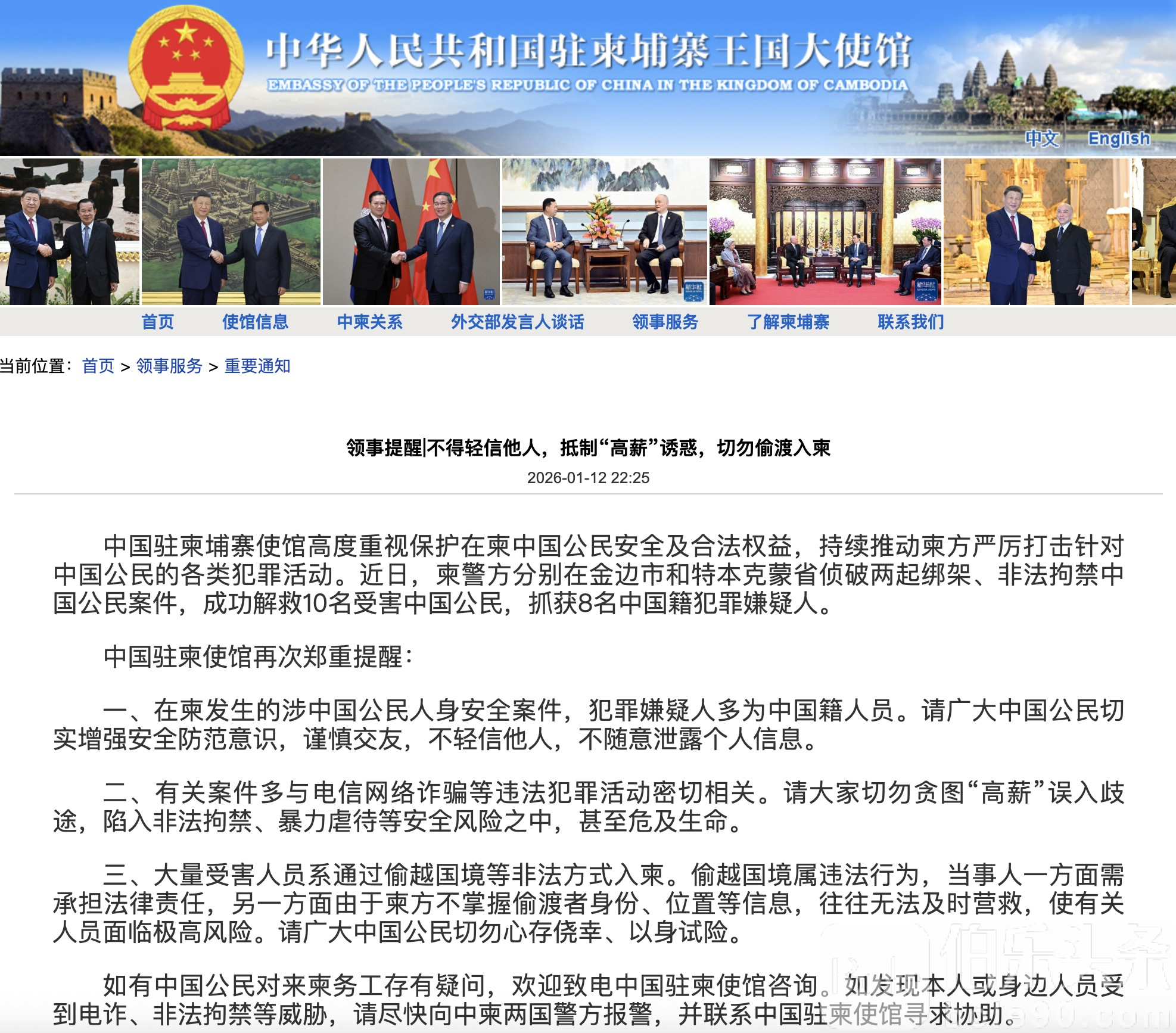 在此背景下,中国驻柬使馆再次发出郑重提醒,呼吁在柬及有意赴柬的中国公民务必提高警惕。