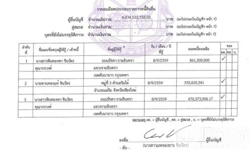 不过,光看资产并不足以勾勒全貌。佩通坦个人负债同样不低,达 44.34亿泰铢,主要来自向母亲、兄长等亲属购买股份时所出具的本票或借据。这部分债务,在此前国会不信任辩论中曾多次被反对派点名质疑,如今仍未清偿。