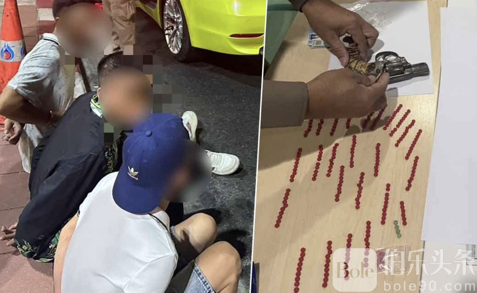 伯乐头条专讯:泰国曼谷旺通郎区(Wang Thonglang)警方在酒精检查站执勤时,拦下一辆形迹可疑的绿色宝马轿车,当场查获枪支与多种毒品,车内3名越南籍男子随即被控制并移送法办。