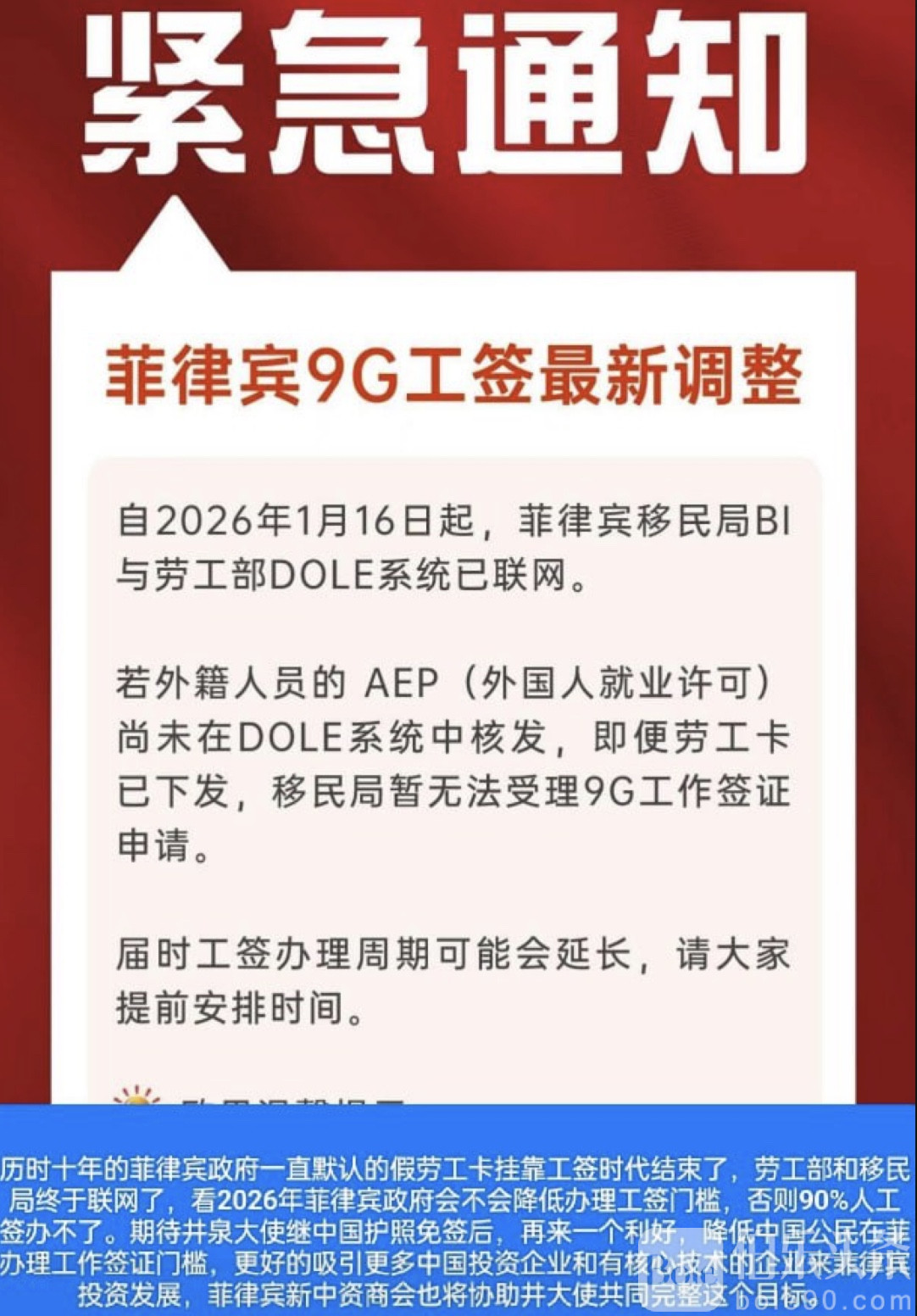 简单说一句:没有在DOLE系统中真实核发的AEP(外国人就业许可),即便你手上已经拿到了所谓“劳工卡”,移民局也将不再受理9G工作签证申请。