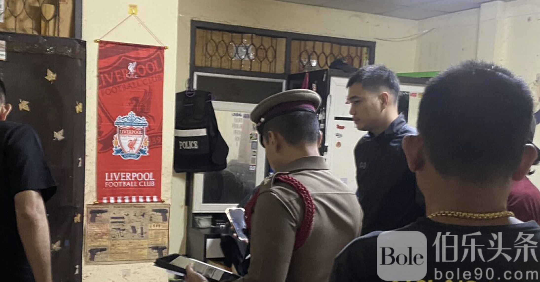 进一步勘查发现,房内抽屉及玻璃桌上放有两把泰制手枪、若干子弹,以及一件防弹背心。警方已将相关物品全部扣押,作为后续调查证据。