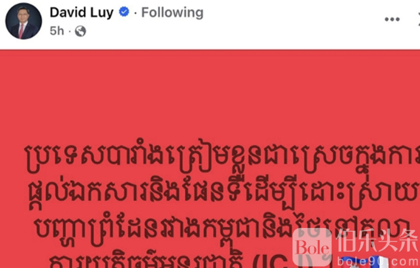 柬埔寨驻法国大使路易·戴维于1月25日在社交媒体上表示,法国愿意提供文件和地图,以促进两国和平、合法解决边界问题。他强调,历史遗留的法律文件与地图,是划定边界的重要依据,而法国在柬埔寨近百年的殖民统治,使其在这一问题上拥有独特价值。