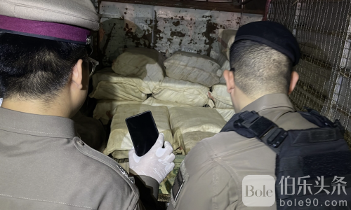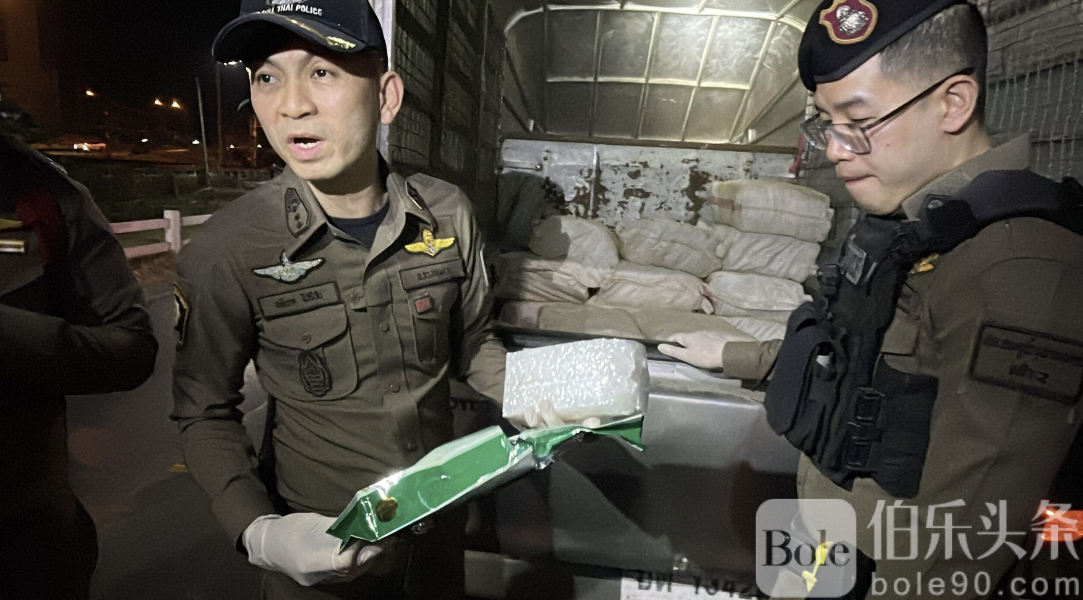 伯乐头条专讯:泰国巴吞他尼府1月26日深夜上演惊心动魄的缉毒追逐战,一辆装载大量毒品的密闭式皮卡车在检查站拒不停车,强行冲卡逃逸,随后弃车潜入大片草丛。警方在车内查获15大袋“冰毒”,每袋约25公斤,总量高达数百公斤,目前正全力追捕在逃司机。