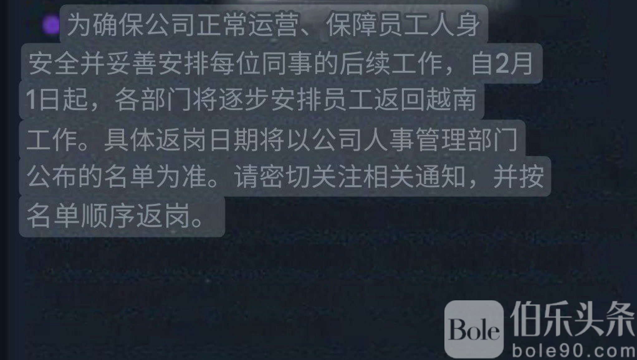 根据安排,自2月1日起,公司将分批组织员工返岗越南,并逐步过渡至居家办公模式。所有员工将统一获得5天缓冲期,用于处理网络、设备等居家办公准备事项。在此期间,无论使用电脑还是暂时通过电话办公,薪资均照常发放。