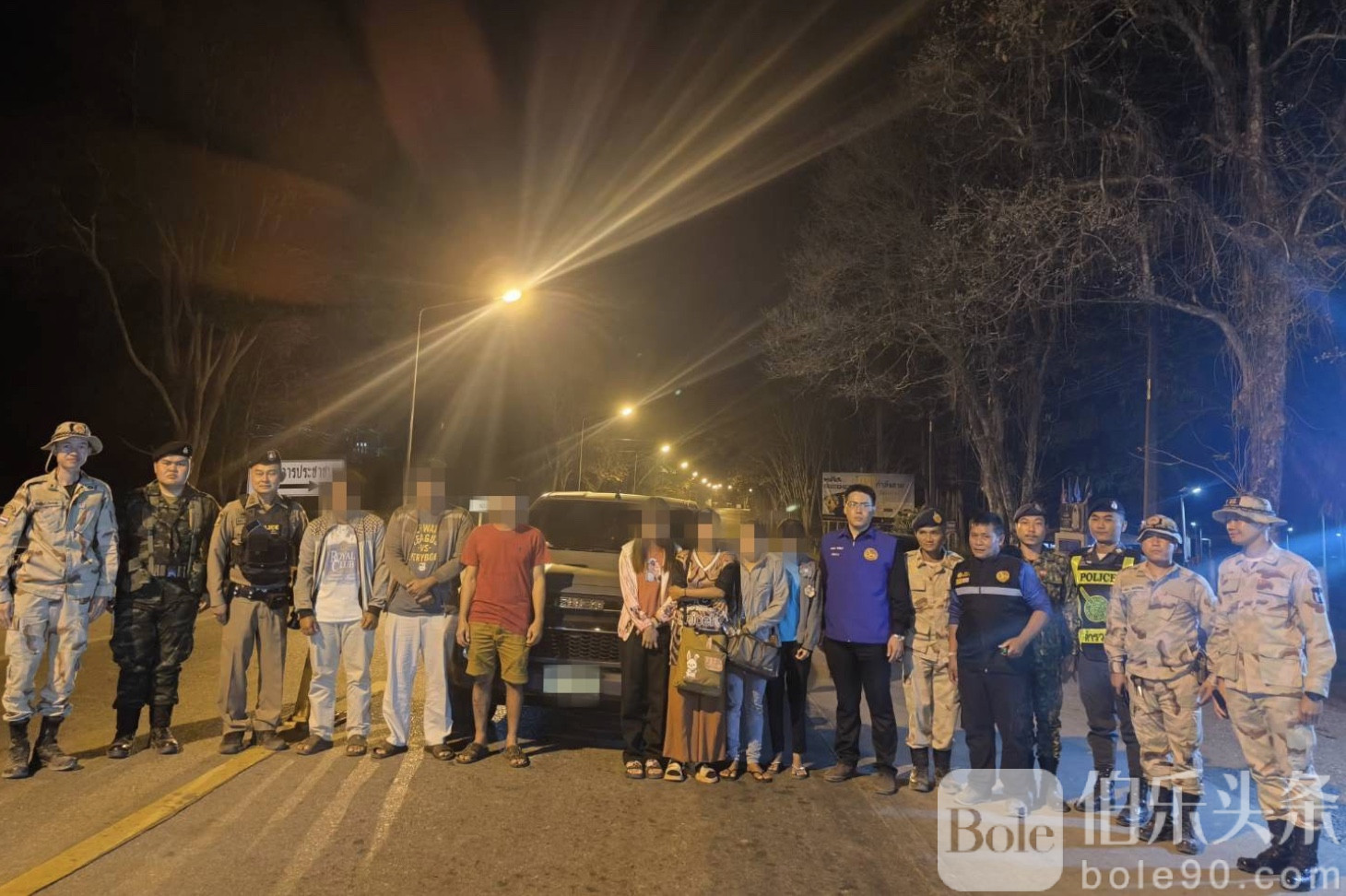 伯乐头条专讯:泰国北碧府警方近日连续抓获多名非法入境者,揭开跨境非法劳工团伙通过“蚂蚁队列”潜入的作案手法。1月31日,北碧府警署在当地自然水道发现缅甸籍非法入境者17人,并缴获一辆用于接送的皮卡车。