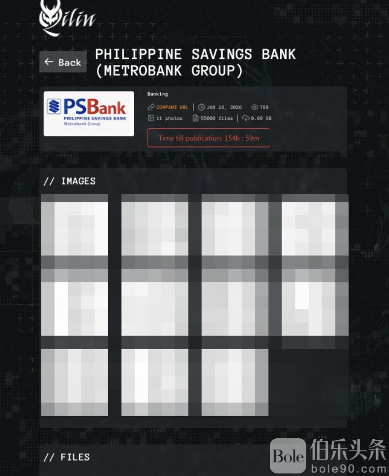 伯乐头条专讯:菲律宾储蓄银行(Philippine Savings Bank,简称 PSBank)近日被推上舆论风口。多方网络安全监测信息显示,该行名称已出现在名为 Qilin(麒麟) 的勒索软件组织暗网泄露页面上,页面醒目位置还挂出了“数据公开倒计时”,一时间引发外界对菲律宾金融体系网络安全状况的担忧。