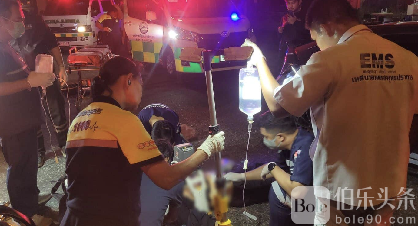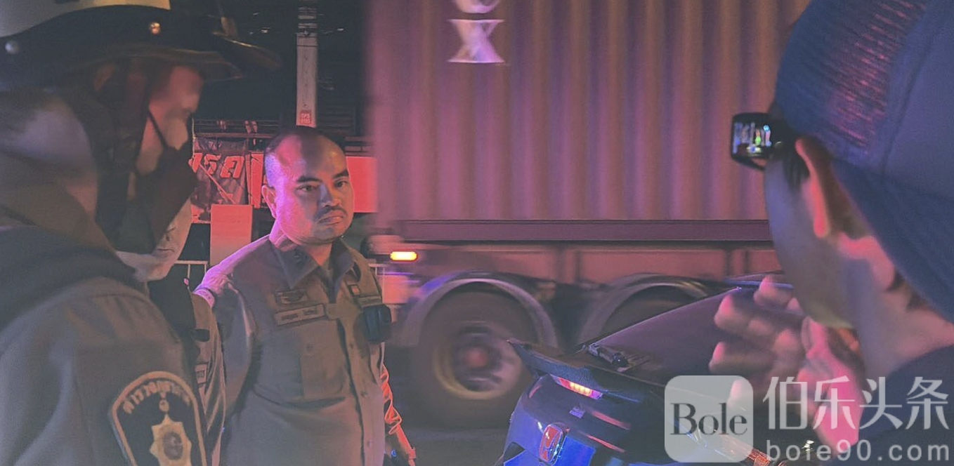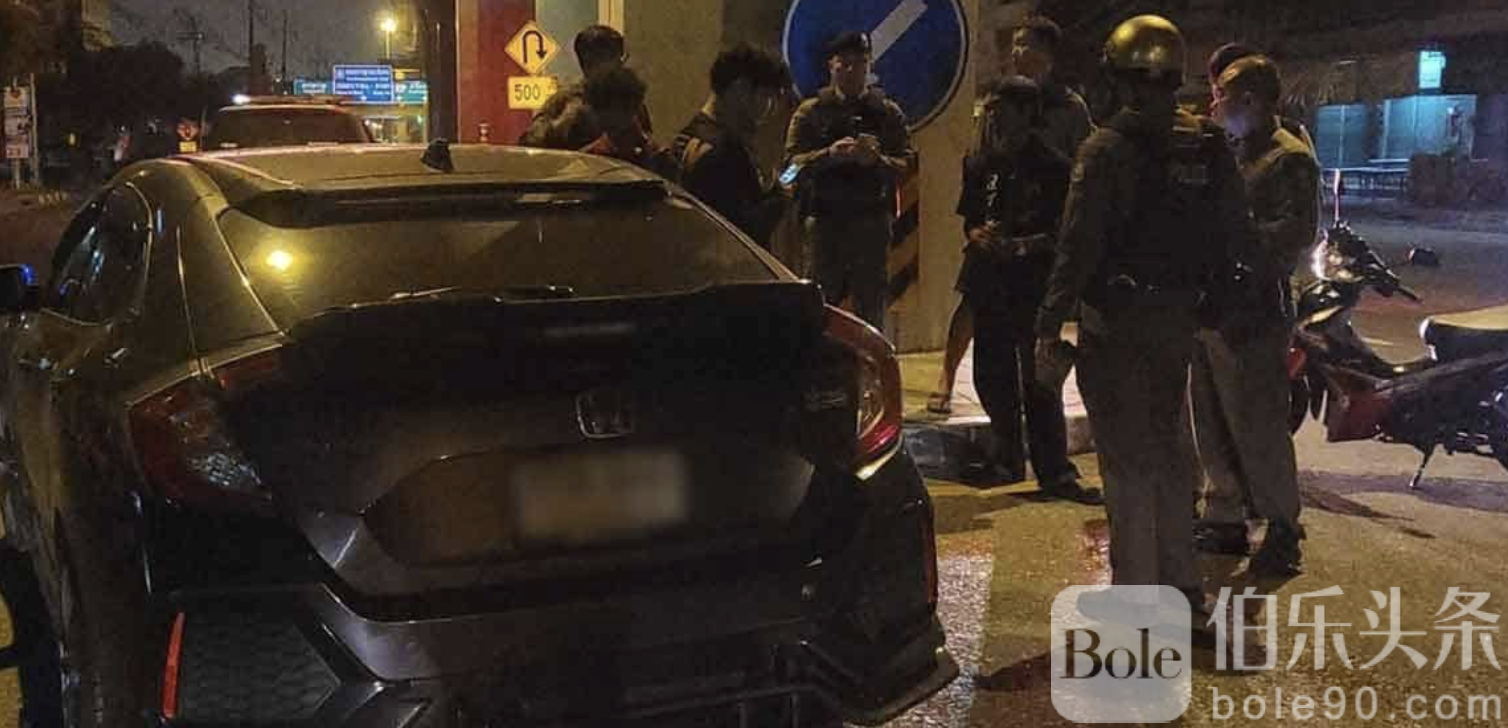 警方通报,案发地点位于北榄府北榄市巴南区一处U形掉头路口,靠近BTS昌艾拉湾站。当天下午,29岁的移民警官素提武·霍克朗,隶属乌隆他尼移民局,倒卧在马路上,右侧肋骨处有一处深度刀伤,身旁停着一辆车门敞开的灰色本田思域轿车。