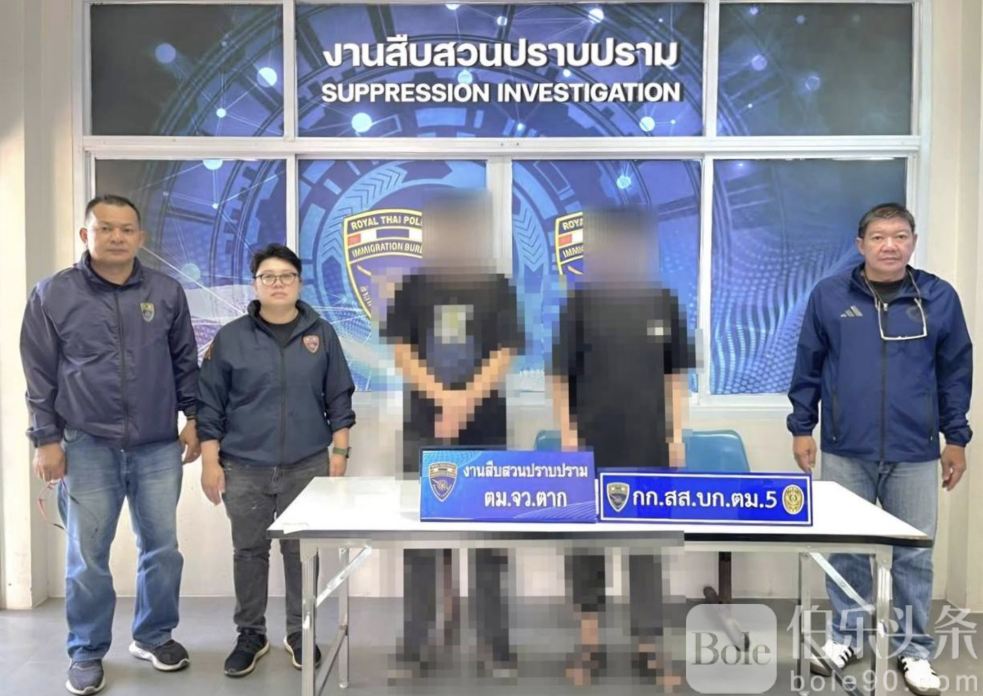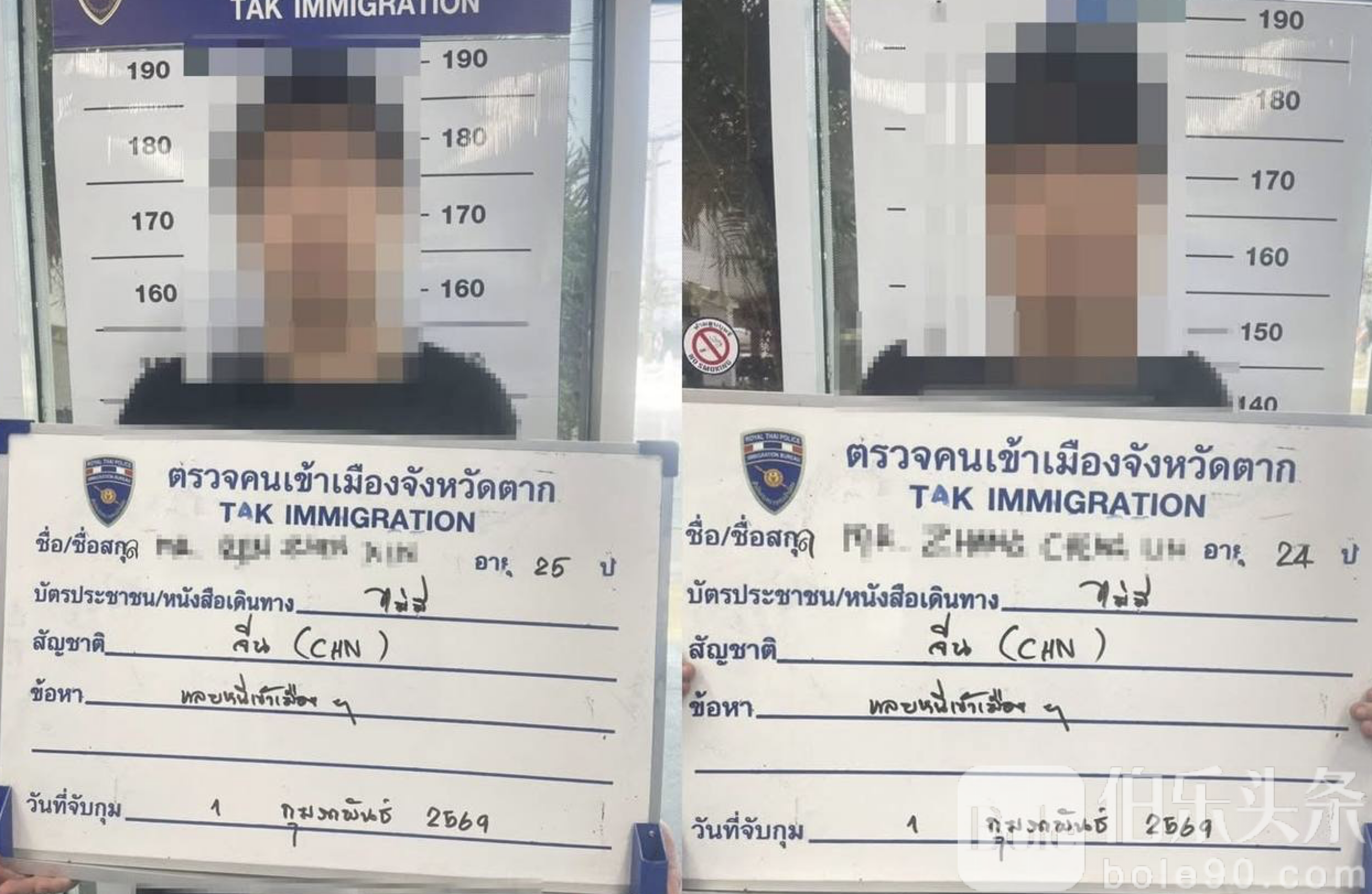 Bole新闻专讯:2026年2月1日晚19时30分,泰国达府移民局侦查人员联合第五区移民局侦查科,在达府湄索县塔赛律镇1村和2村,以及达府移民局办公区附近,成功抓获2名中国籍非法入境人员。