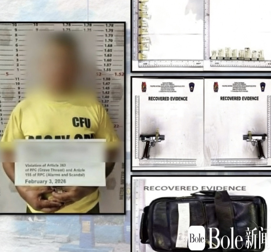 Bole新闻专讯:菲律宾帕赛市警方于2月2日成功逮捕一名退役海军陆战队员,该男子涉嫌在公共场所持枪恐吓一名网约车司机,触犯“严重威胁”和“扰乱公共秩序”等罪名。警方介绍,嫌疑人化名“JR”,58岁,当天在Barangay 201的Merville Access Road附近被捕。