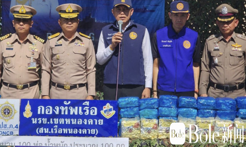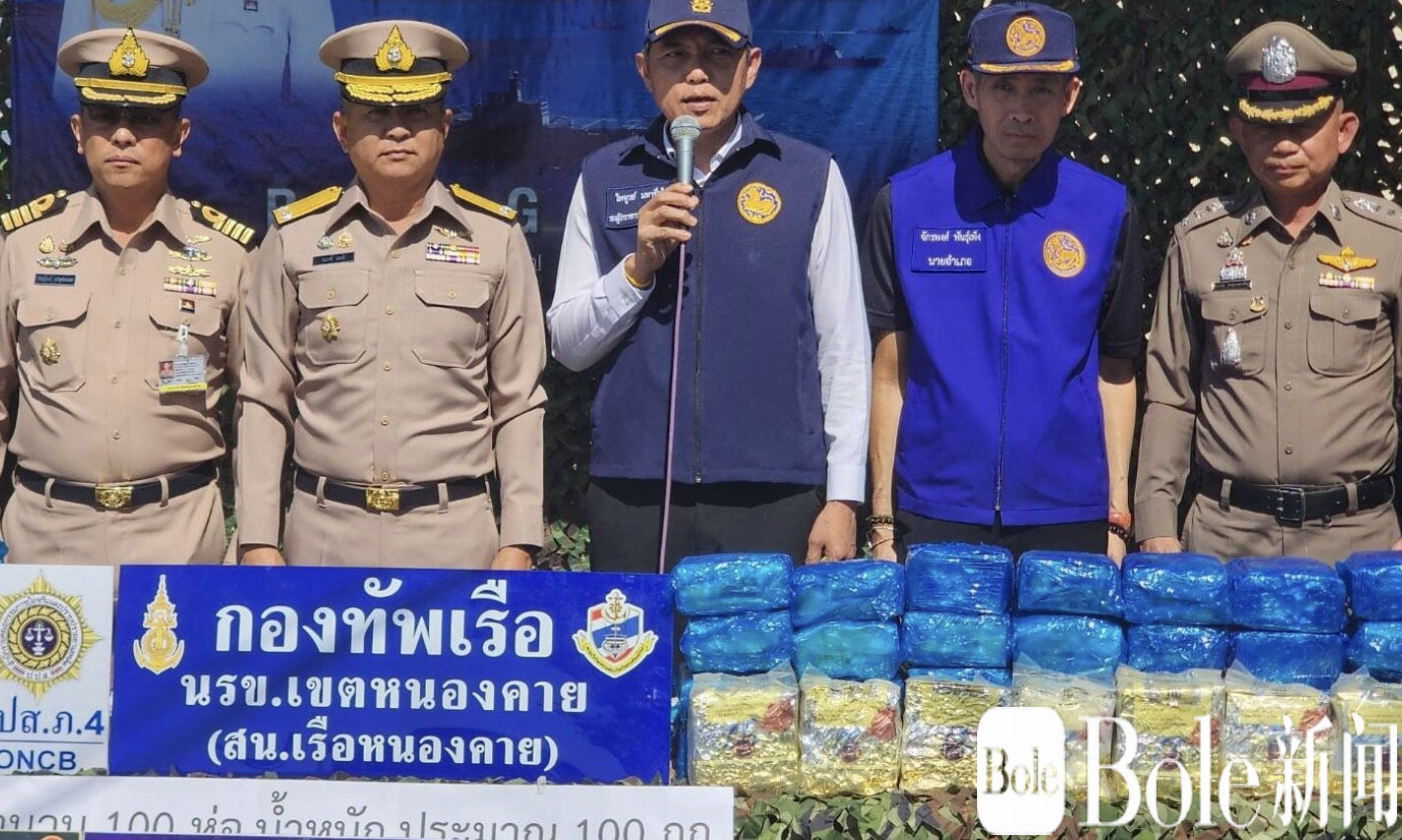 Bole新闻专讯: 2026年2月1日,泰国宁攸府(หนองคาย)边防部队在湄公河沿岸成功截获一批跨境运输的冰毒。此次行动中,毒贩在发现官兵接近后弃物逃逸,现场缴获冰毒总量达100公斤,市值约1400万泰铢。