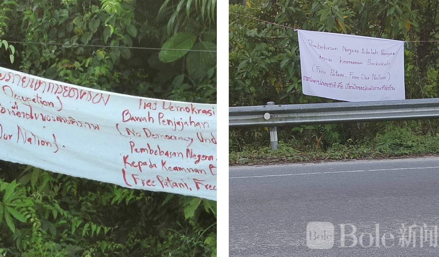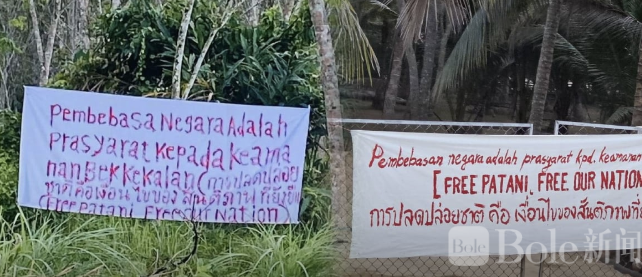 Bole新闻专讯:泰国南部三省巴塔尼、也拉、那拉提瓦在清晨发现多处分离主义横幅,涉及地区安全部门立即行动,紧急清理并排查可疑物品,疑为BRN(民族解放军)成员在当地进行象征性示威活动。