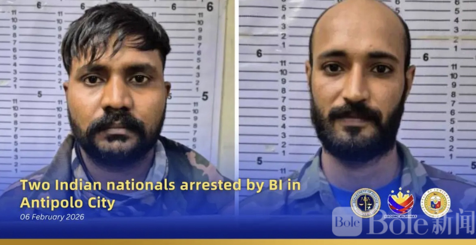 Bole新闻专讯:菲律宾移民局(BI)情报部门于1月29日在安蒂波洛市执行任务时,成功逮捕两名印度籍男子,分别是28岁的Sukhbir Singh和30岁的Sawan Singh。两人被发现居住在San Jose区的住宅区内,并在行动中被移民局人员控制。