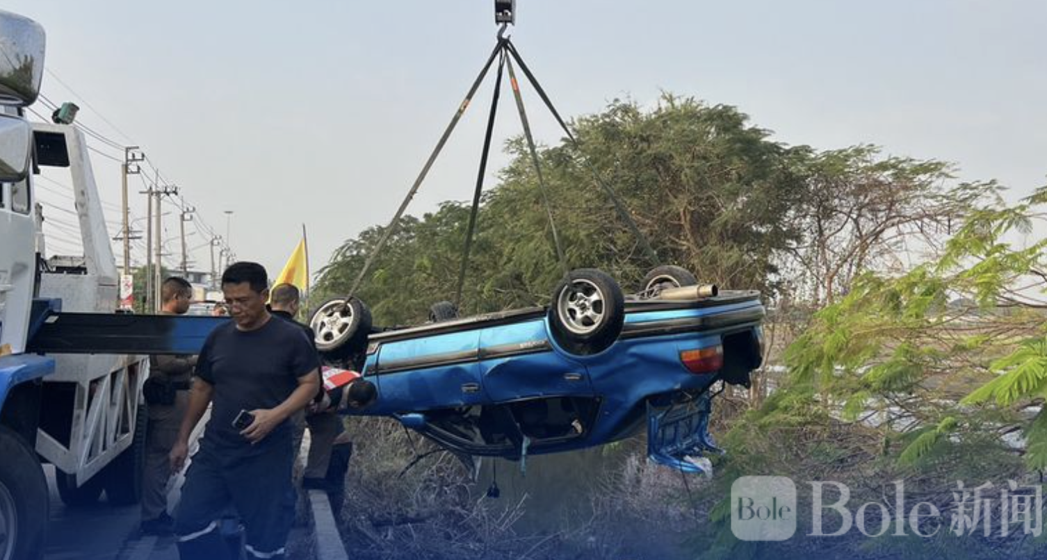 Bole新闻专讯:泰国时间2月9日中午,暖武里府警方接报称,在巴革县空科伊镇345号公路支线一条乡村道路旁水渠中发现一辆翻覆轿车,车内发现一名男子死亡,初步判断为深夜行车失控坠渠事故。