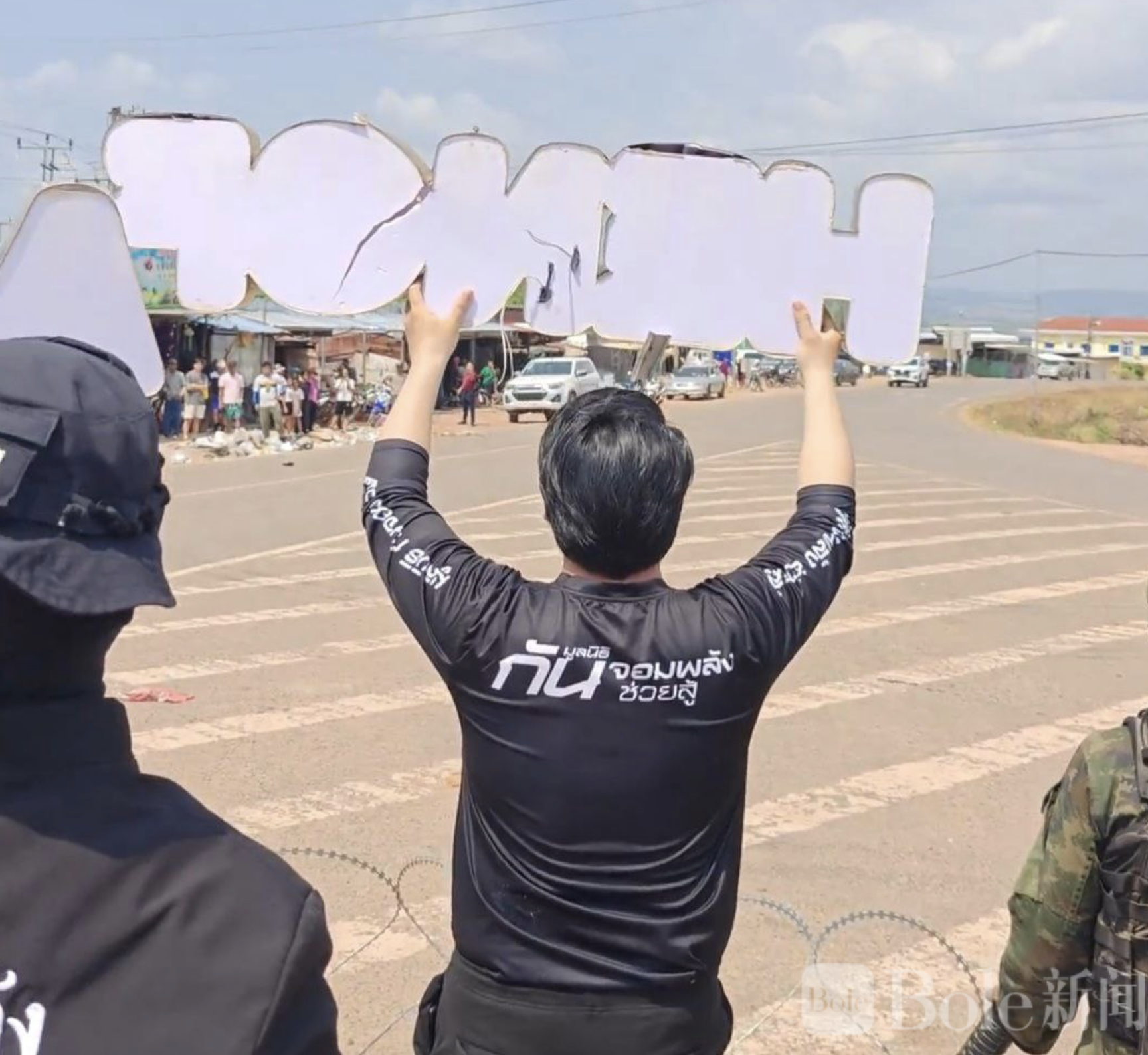 Bole新闻专讯:2月7日,泰国菩萨恒方酒店发生中泰老板冲突事件。事件起因是恒方酒店的中国老板方先生撤掉了酒店屋顶集装箱上的一条条幅,条幅上原本写着泰国Gun Jompalang基金会的名字。