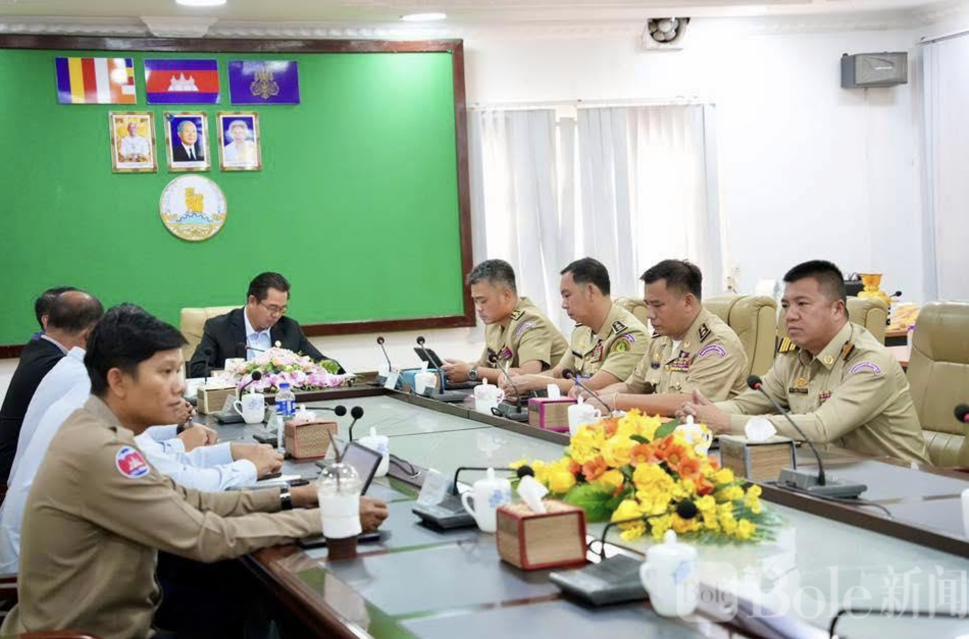 Bole新闻专讯:2月9日下午,柬埔寨西港省长蒙西那与省警察局局长苏诺塔在省政府大楼会议室参加了由内政部代部长宋坡主持的周例视频会议,会议重点跟进全国打击网络诈骗及跨国犯罪的专项工作进展。