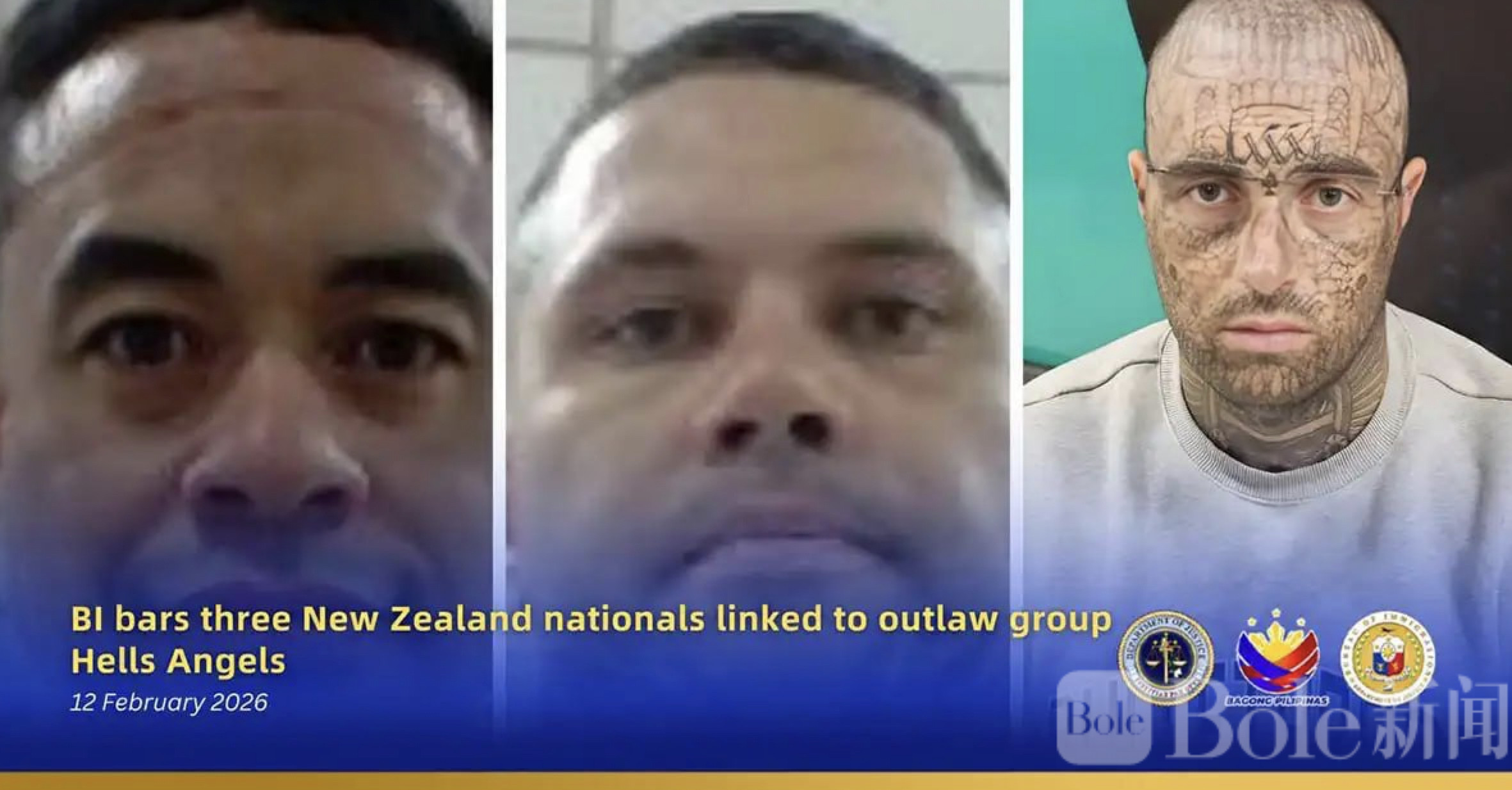 Bole新闻专讯:菲律宾移民局(BI)近日果断行动,拒绝三名持纽西兰护照的男子入境,原因是他们涉嫌与国际非法组织“地狱天使摩托车俱乐部”有关联,并被国际刑警组织列为重点关注人员。