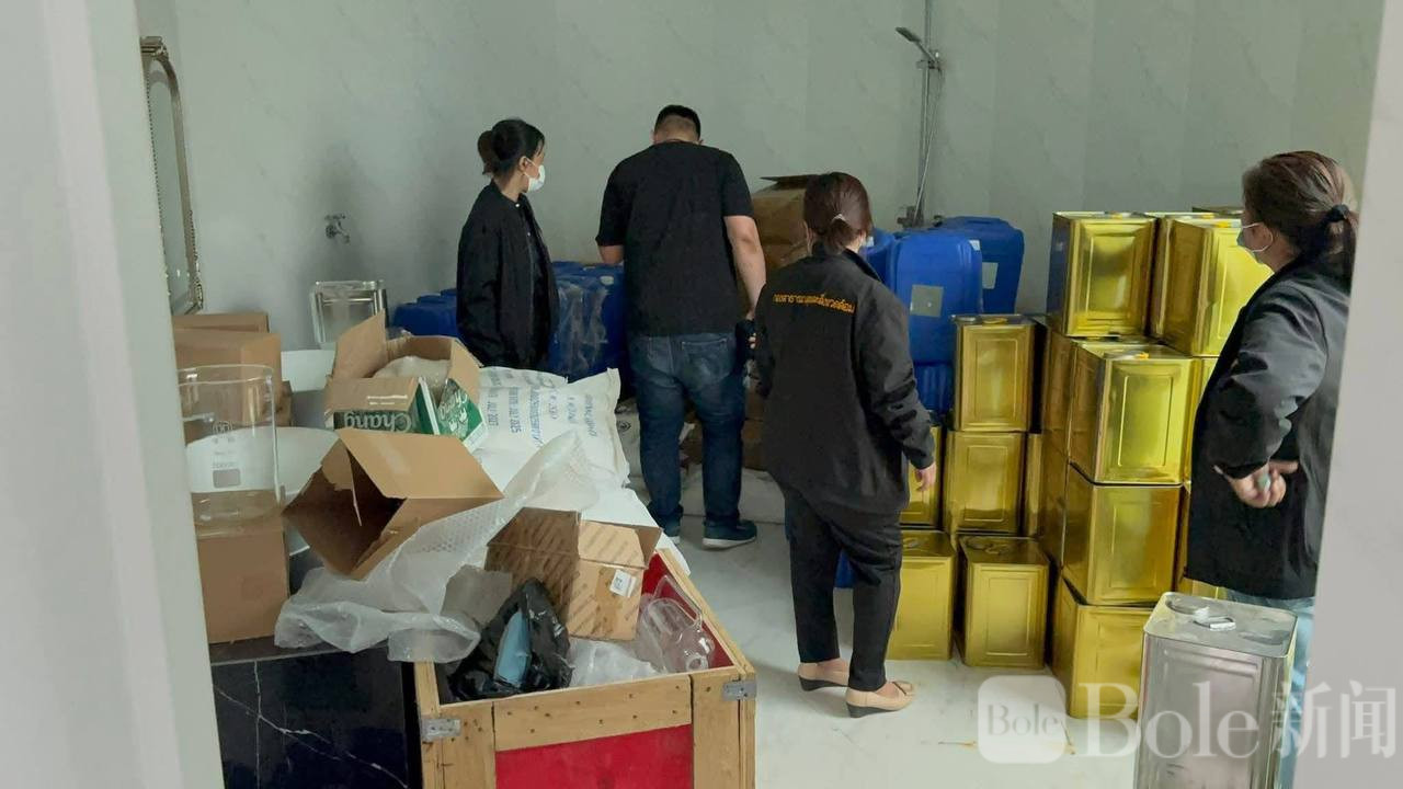 Bole新闻专讯:2月13日晚,泰国执法部门在芭堤雅邦拉蒙地区展开突袭行动,对一处豪华住宅进行搜查时,发现屋内暗藏疑似毒品前体生产设备及大量化学品,并当场逮捕两名中国公民。