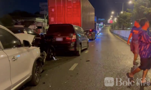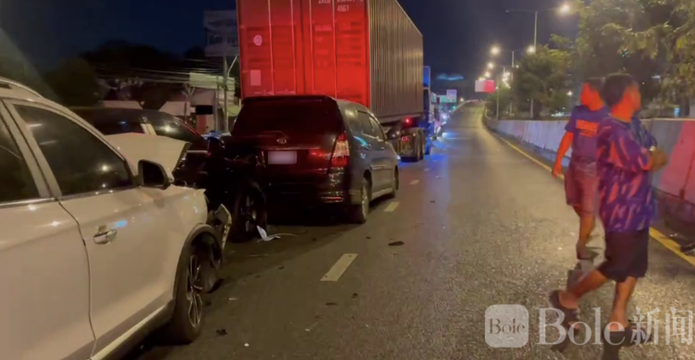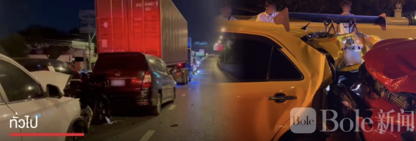 曼谷外环18轮卡车连环撞!10车受损6人受伤