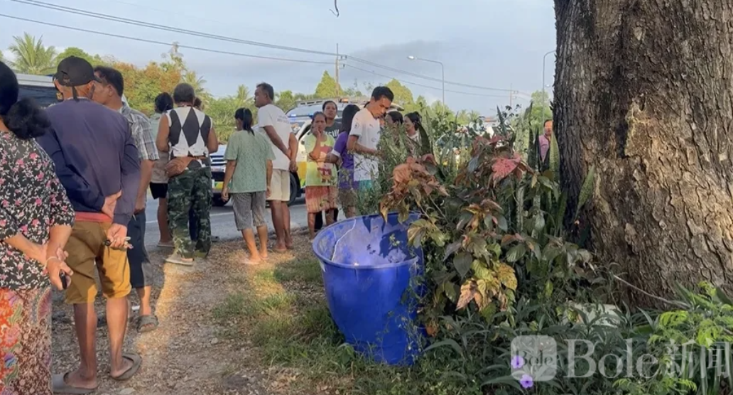 Bole新闻专讯:泰国南部那空是贪玛叻府清晨发生一起惨烈交通事故,三名少年同乘一辆摩托车,在高速行驶中失控冲出路面,猛烈撞上路旁罗望子树,当场全部死亡,现场触目惊心。