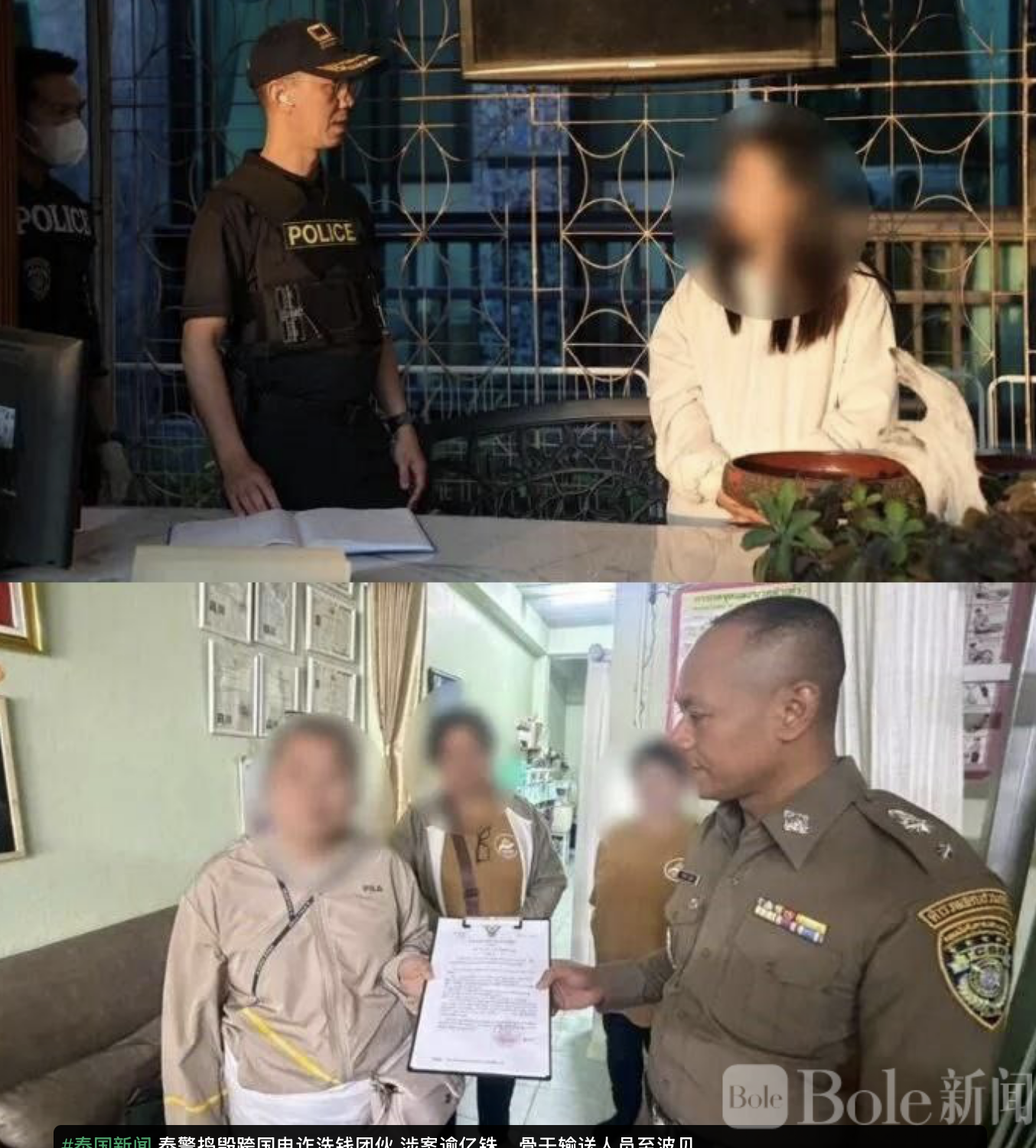 Bole新闻专讯:近日,泰国网络犯罪调查局(CCIB)出动200余名警力,在曼谷、呵叻府、罗勇府、春武里府及夜丰颂府等地展开收网行动,成功捣毁一个跨国电信网络诈骗洗钱团伙,逮捕中国籍嫌犯刘某及三名泰籍同伙。