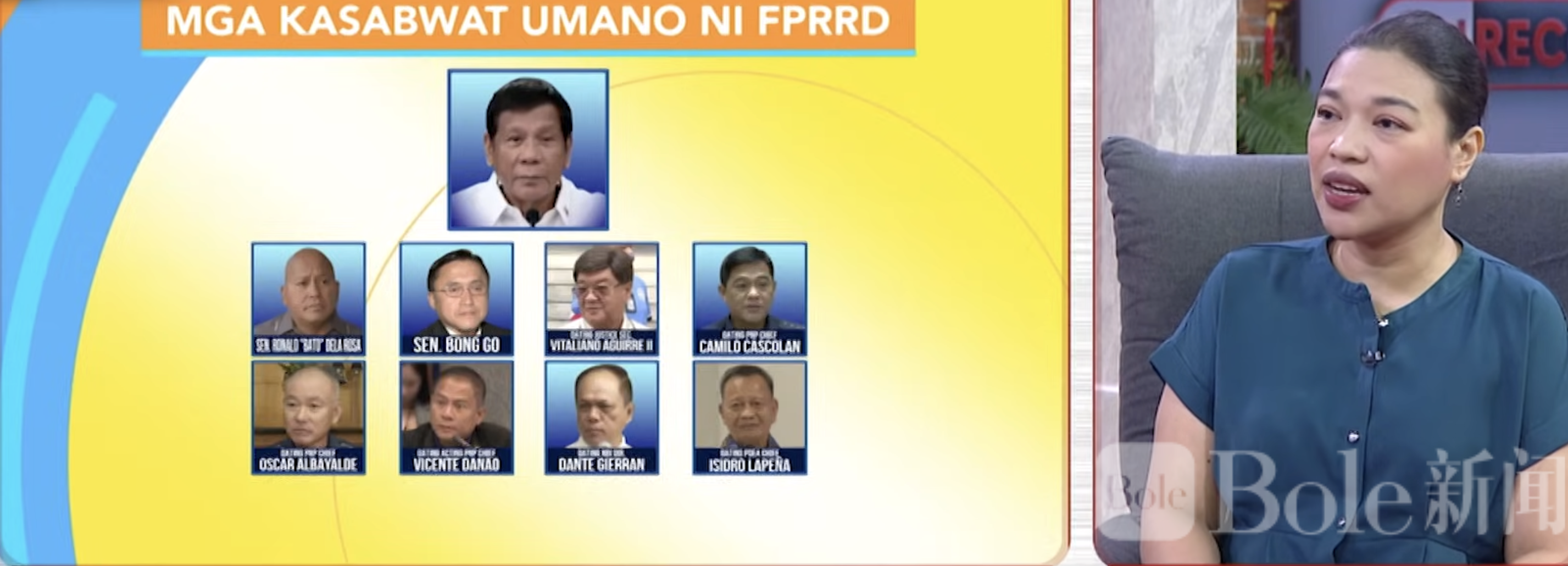 根据ICC近日发布的文件,所谓“共犯”名单涉及在杜特尔特反毒行动期间参与“共同计划”、通过暴力手段中和所谓犯罪分子的人,包括参议员罗纳德·“巴托”·德拉罗萨、参议员邦·戈、前司法部长维塔利亚诺·阿吉雷二世、前菲律宾国家警察局长维森特·达瑙、卡米洛·卡斯科兰、奥斯卡·阿尔巴亚尔德、前国家调查局局长但特·吉兰,以及前菲律宾禁毒署署长伊西德罗·拉佩尼亚。