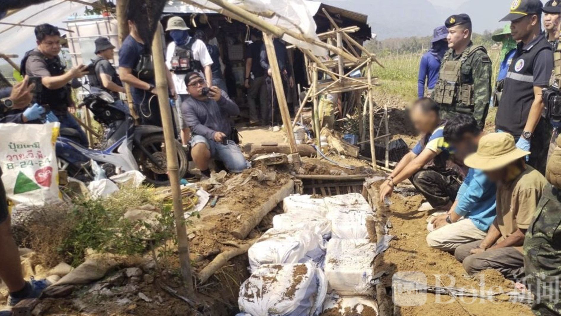 Bole新闻专讯: 泰国清莱省发生一起重大缉毒行动,当地军警联合多部门在农田中查获总计6,000,000颗冰毒,并逮捕三名涉案嫌犯。行动中,毒品被埋藏在30个麻袋中,原计划等待运往泰国中部地区。