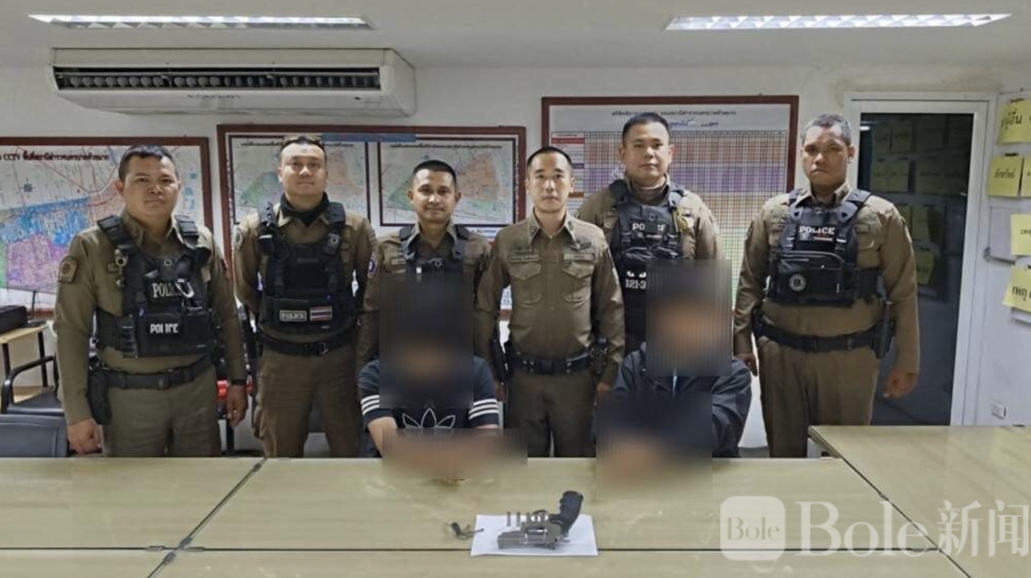 Bole新闻专讯:泰国曼谷拉姆甘亨路(Ramkhamhaeng)一所技工学院门口,警方联合校方于2月19日晚展开突击检查时,查获两名职业学院学生携带自制手枪及子弹的案件,引发社会关注。