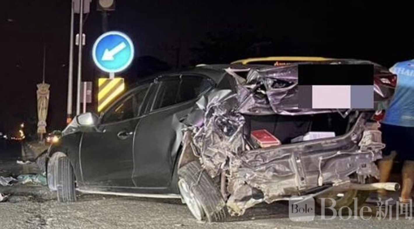 Bole新闻专讯:2月21日清晨约05:28,泰国甘烹碧府塔马卡区一加油站附近发生一起惨烈车祸:两辆轿车在路面上发生碰撞,其中一辆失控的车辆将正在化缘的和尚撞倒,当场身亡。事故还造成一名25岁男子身体多处受伤,紧急送往当地医院救治。