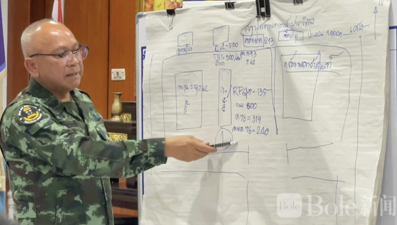 Bole新闻专讯:泰国素林府边境警察第21营弹药库于2月25日凌晨发生爆炸,现场一名警员受伤已送往威拉瓦特约廷营医院救治,其余警员及营区家属紧急撤离。事故造成RPG、步枪子弹及小口径子弹库严重损毁,火势一度蔓延至邻近的小型弹药储存区,当局已宣布周边为危险区域并持续高强度监控。