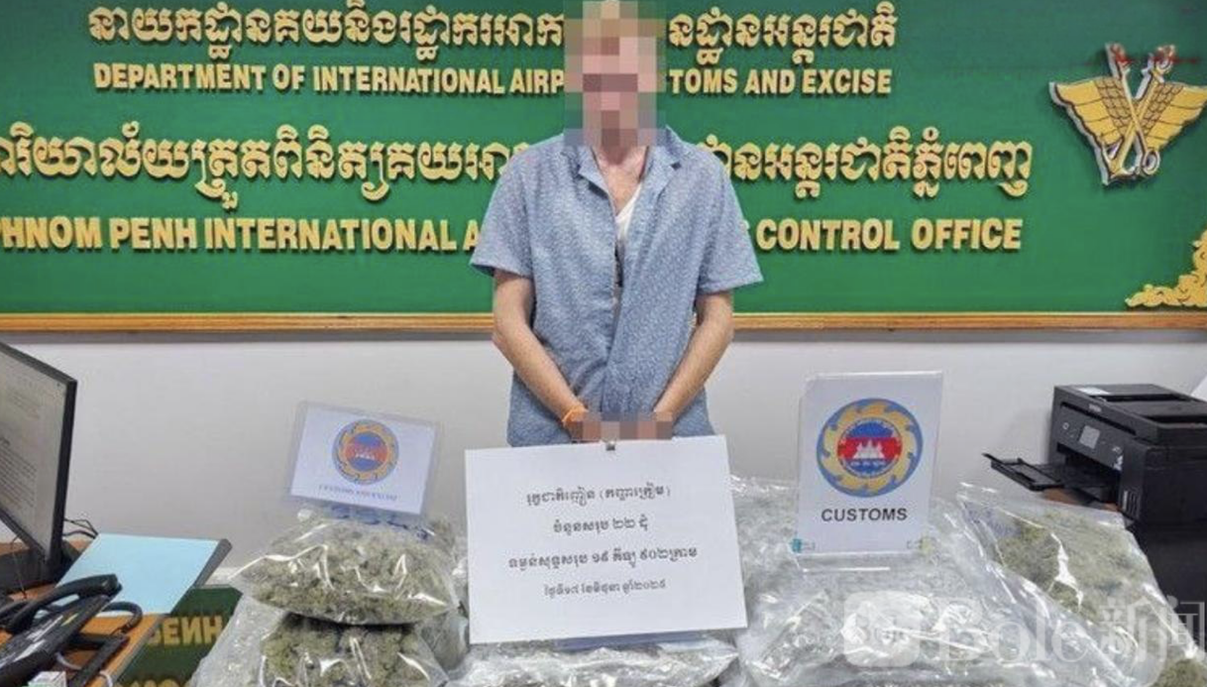 金边机场查获大麻走私案!两名英国男子被控走私20公斤大麻