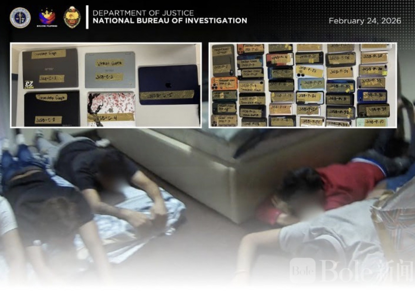 Bole新闻专讯:菲律宾国家调查局国家首都区办事处(NBI–NCR)近日在克拉克自由港区展开雷霆行动,成功捣毁一个涉及网络金融诈骗的大型犯罪团伙,当场逮捕14名嫌疑人。