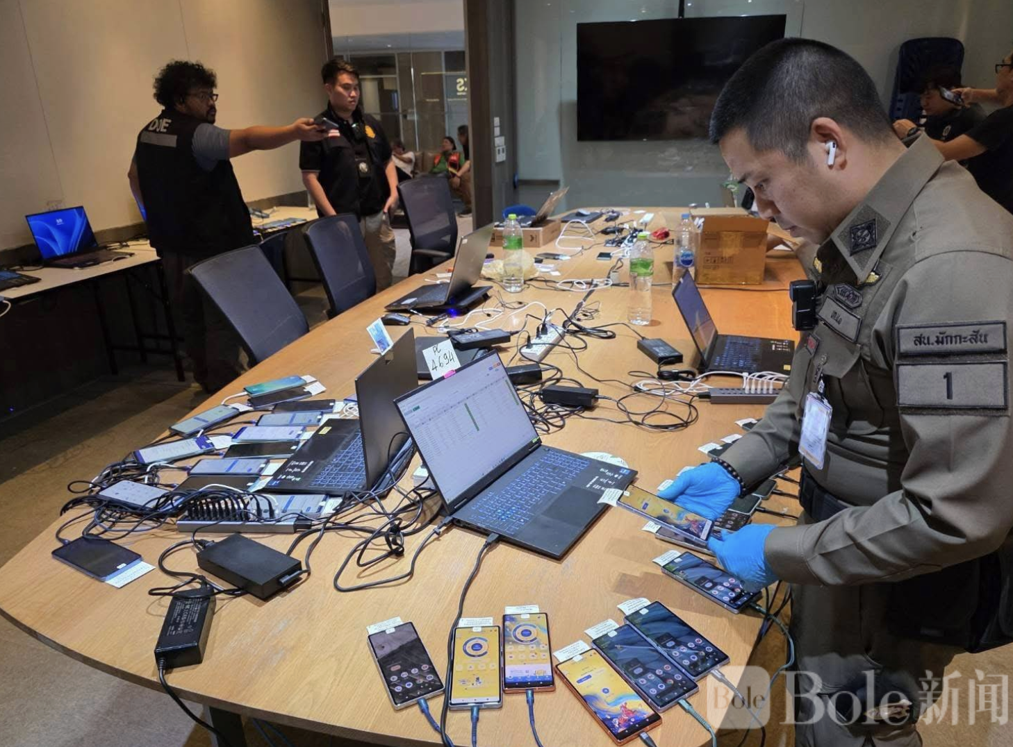 调查显示,该办公室位于公寓围墙内的一栋单层建筑,门禁严密,全天24小时有人把守。警方此前已暗中监控一段时间,发现工作人员全部为外国人,没有任何泰国员工,并且实行轮班制度,每班至少20人,全天候运作。同时,连清洁人员也只能进入办公室前厅,无法进入内部工作区,这一异常情况引起警方高度警觉,最终申请搜查令展开行动。