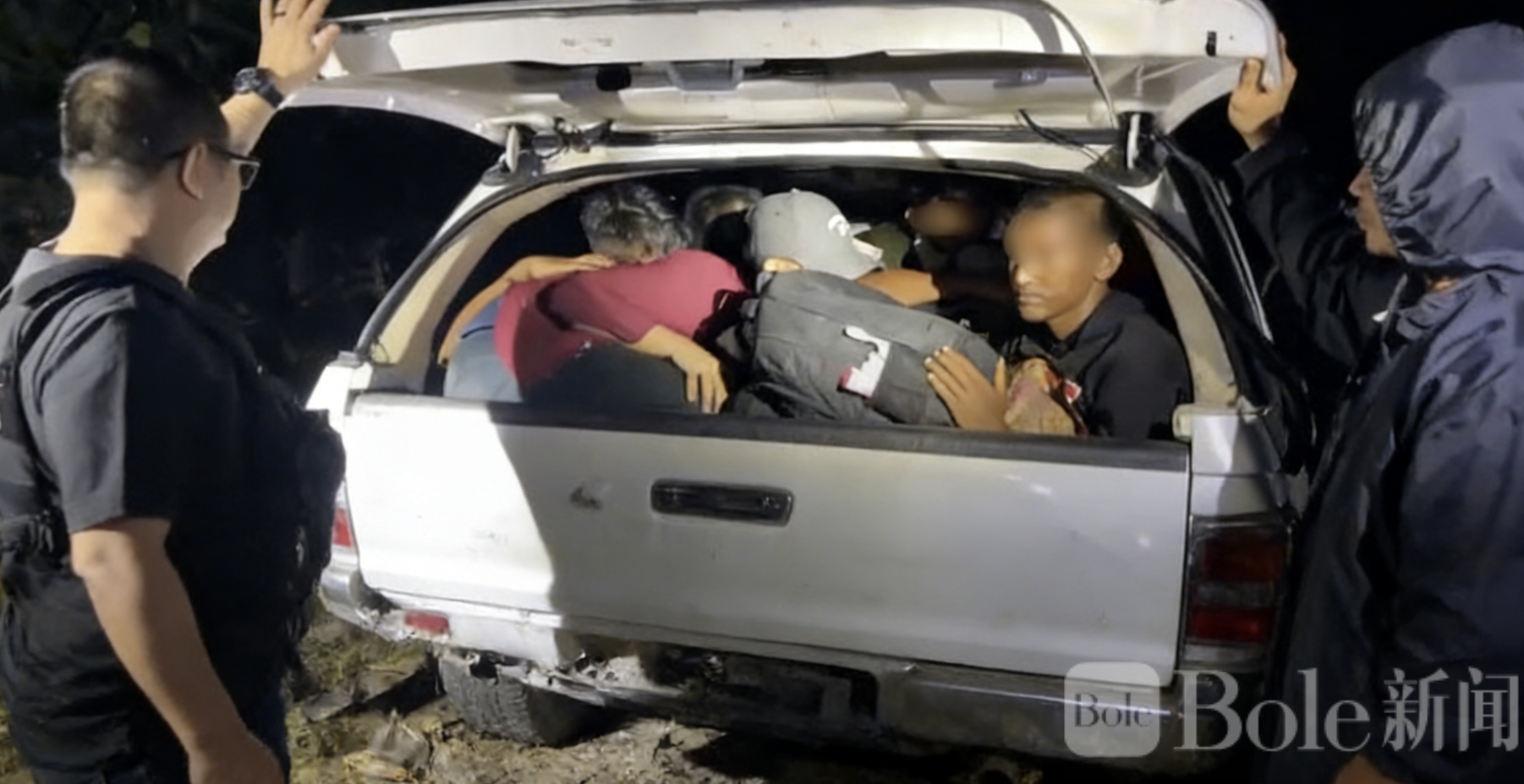 Bole新闻专讯:泰国塔克府边防警日前在母索县拦截到一辆满载非法移民的白色四门皮卡车。车内及封闭货斗中共挤载21名缅甸男女,包括16名男子、5名女子,以及若干行李,意图规避检查但未能逃脱执法人员视线。