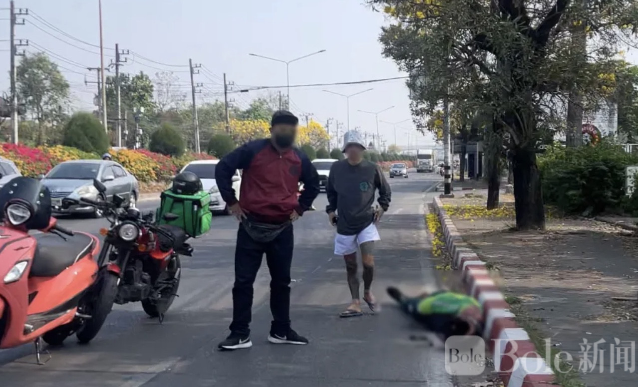 据现场目击者和警方初步信息,冲突发生在当天上午10点左右,地点位于清迈市湄希亚(Mae Hia)红绿灯十字路口附近。当时,一名外卖骑手正骑着摩托车赶着送餐订单,突然被两名同样骑摩托车的男子追上并拦住。双方在路边发生争执,气氛迅速变得紧张。