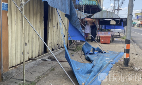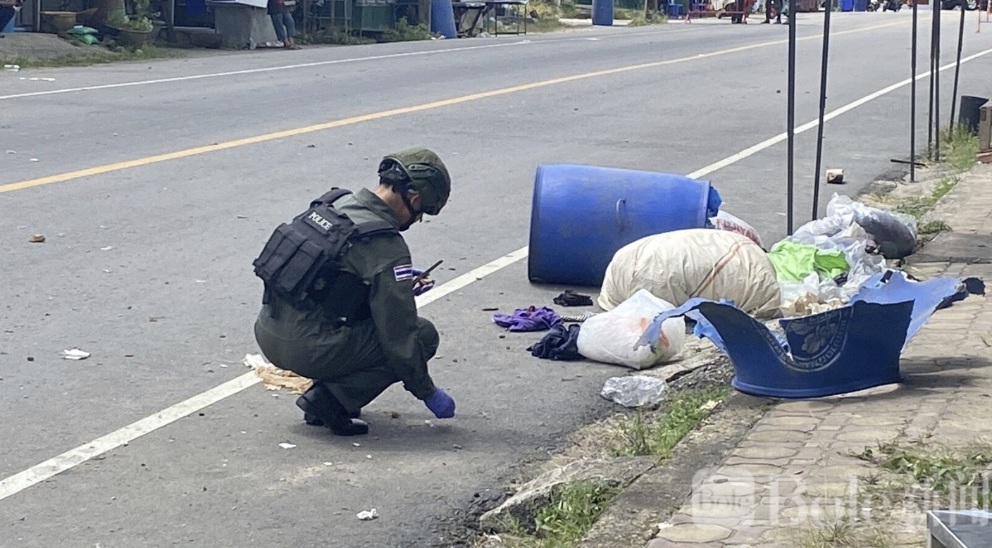 Bole新闻专讯:泰国南部纳拉提瓦斯府斯里萨功县日前发生一起爆炸事件,两名身份不明的嫌疑人骑摩托车到一家动物饲料店门前,将疑似装有炸弹的袋子丢进垃圾桶后迅速离开,随后现场发生爆炸。所幸事件没有造成人员伤亡,但爆炸威力巨大,店铺铁门被炸出密密麻麻的孔洞,碎片散落满地,现场一片狼藉。