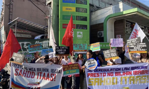 Bole新闻专讯: 随着菲律宾燃油价格再度大幅上调,一场针对油价上涨的抗议活动3月10日在奎松市库宝(Cubao)地区爆发。由多个农村团体组成的联盟走上街头,在当地一家加油站外举行示威,呼吁政府立即采取措施控制油价,并暂停对石油产品征收燃油税,以减轻普通民众特别是农业和渔业群体的经济压力。