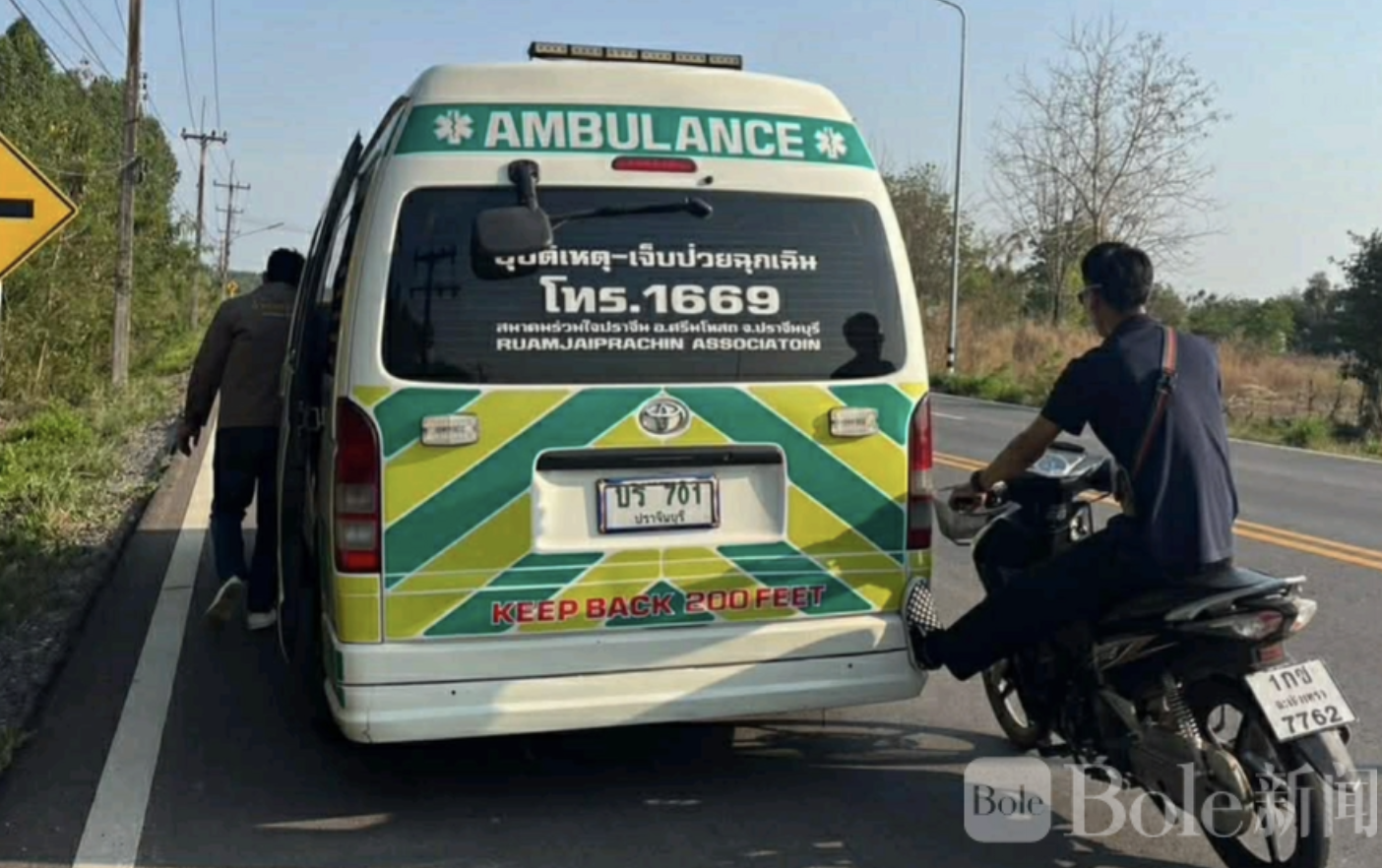 Bole新闻专讯: 泰国普拉钦府科克皮布区近日爆发严重油荒,一辆志愿救护车在执行救护任务途中因柴油用尽被迫停在路上,车内仍有患者,情势紧急。